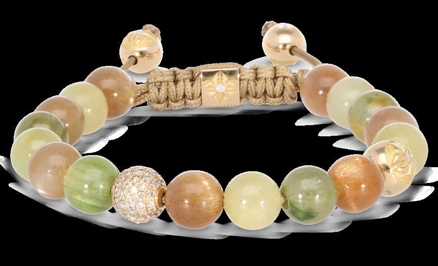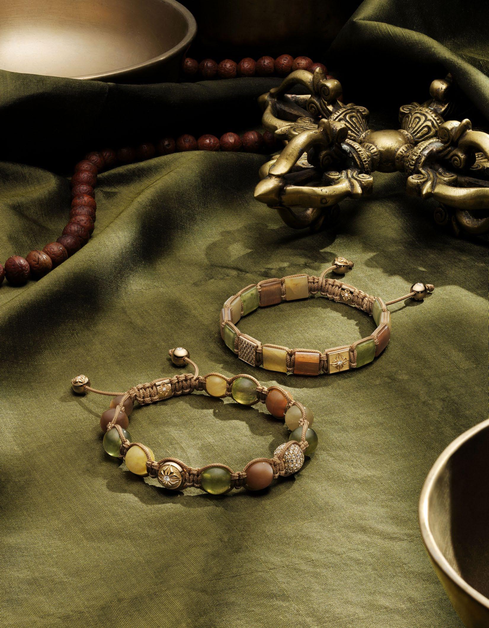 10mm SHAMBALLA® Braided & Lock Bracelet | Brown & G/Vs Diamonds, Green & Yellow Sapphires, Light Brown Moonstones, 18K Yellow Gold