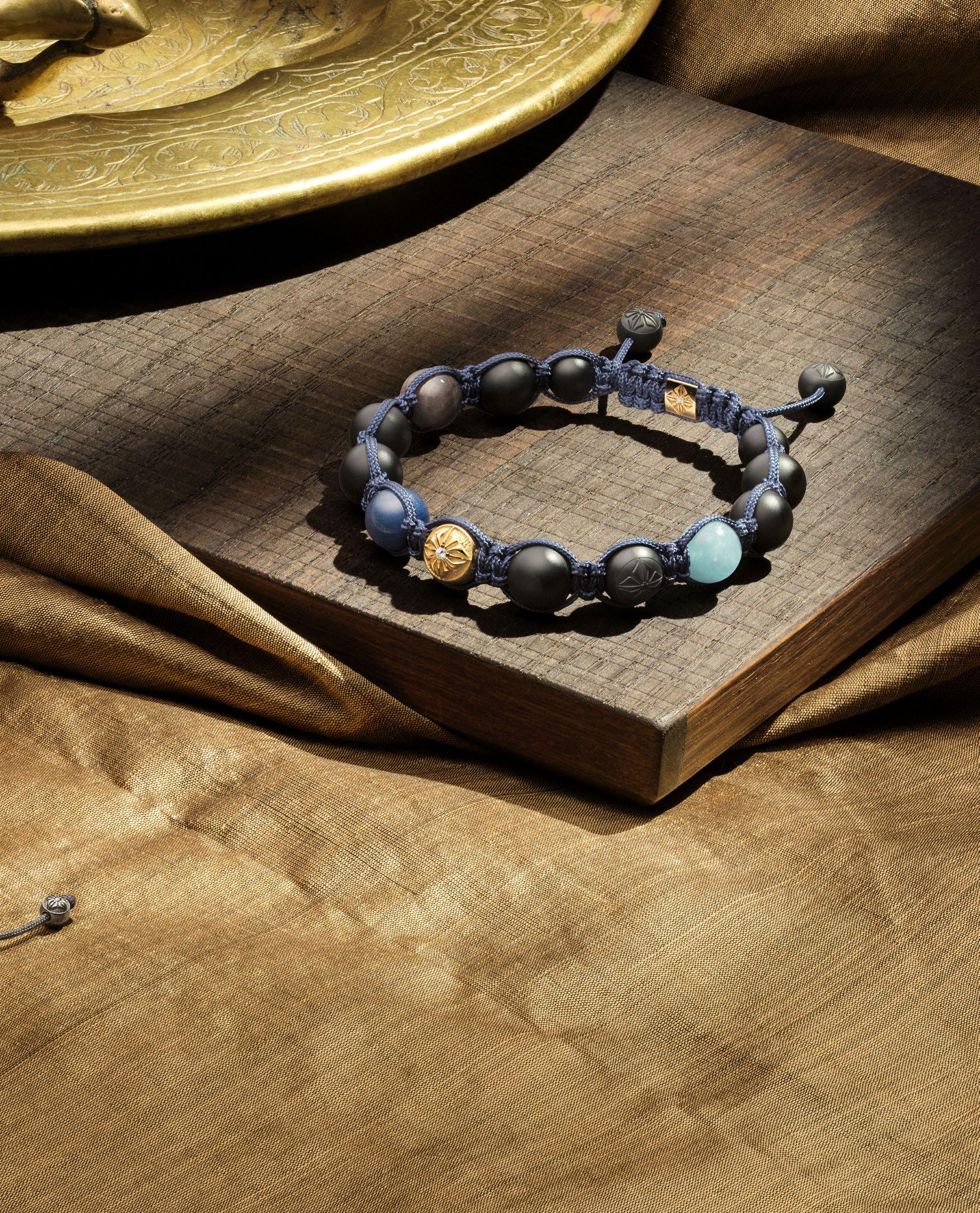 10mm SHAMBALLA® Braided Bracelet | G/Vs Diamonds, Blue & Grey Sapphire, Milky Aquamarine, Black Matte Ceramic, Onyx, 18K Yellow Gold STAR OF SHAMBALLA® Ring | G/Vs Diamonds, 18K Black Rhodium Plated Yellow Gold