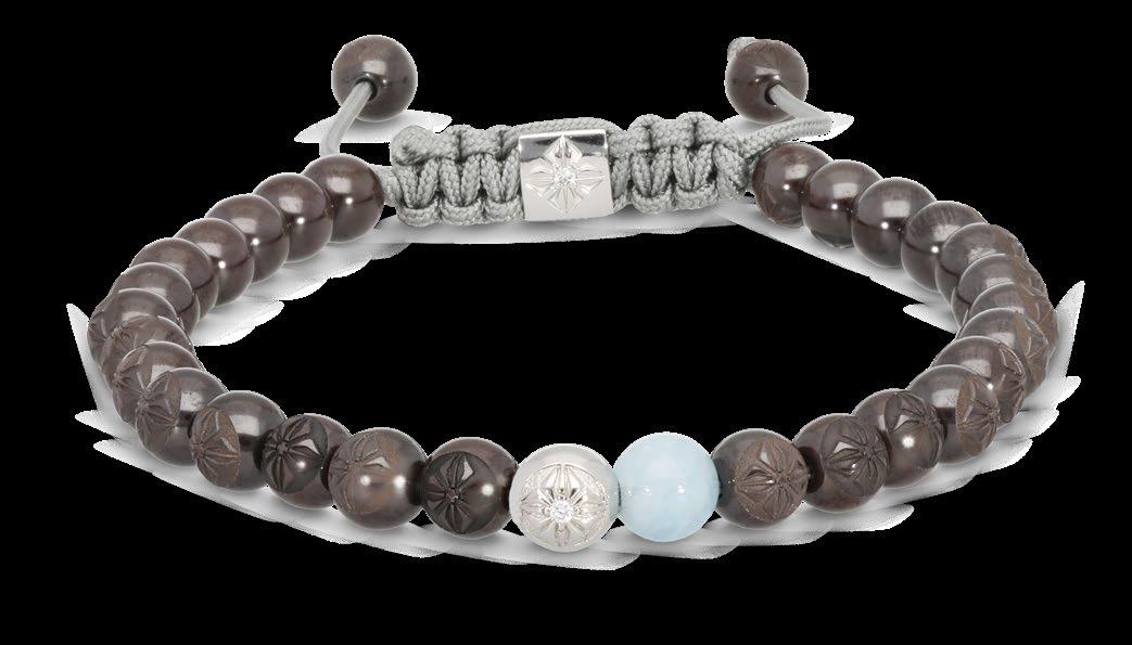 6mm SHAMBALLA® Non-Braided Bracelet | G/Vs Diamonds, Milky Aquamarines, Brown Ceramic, Platinum