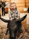 A modest birth weight bull, built with plenty of calving ease but proven ability to grow, weighing 800 lbs in October.