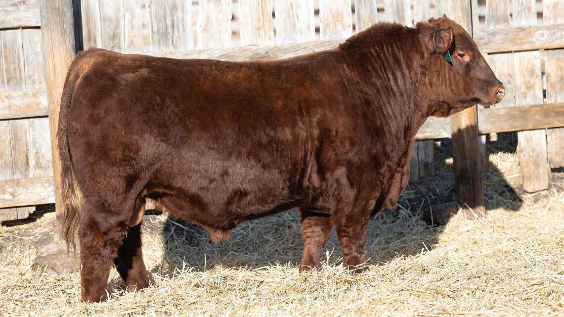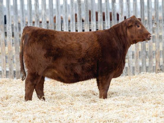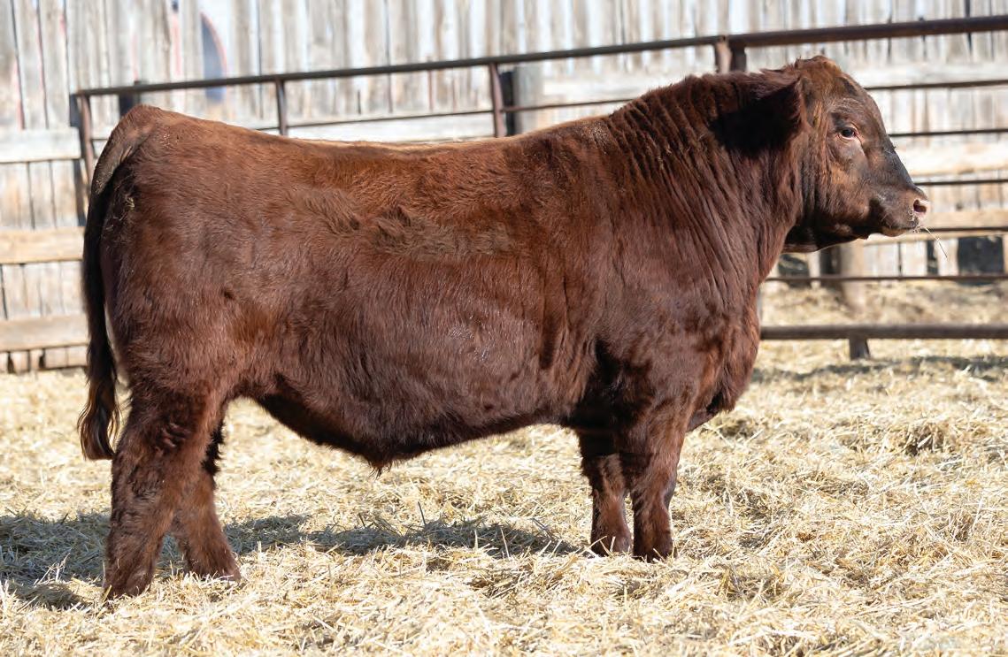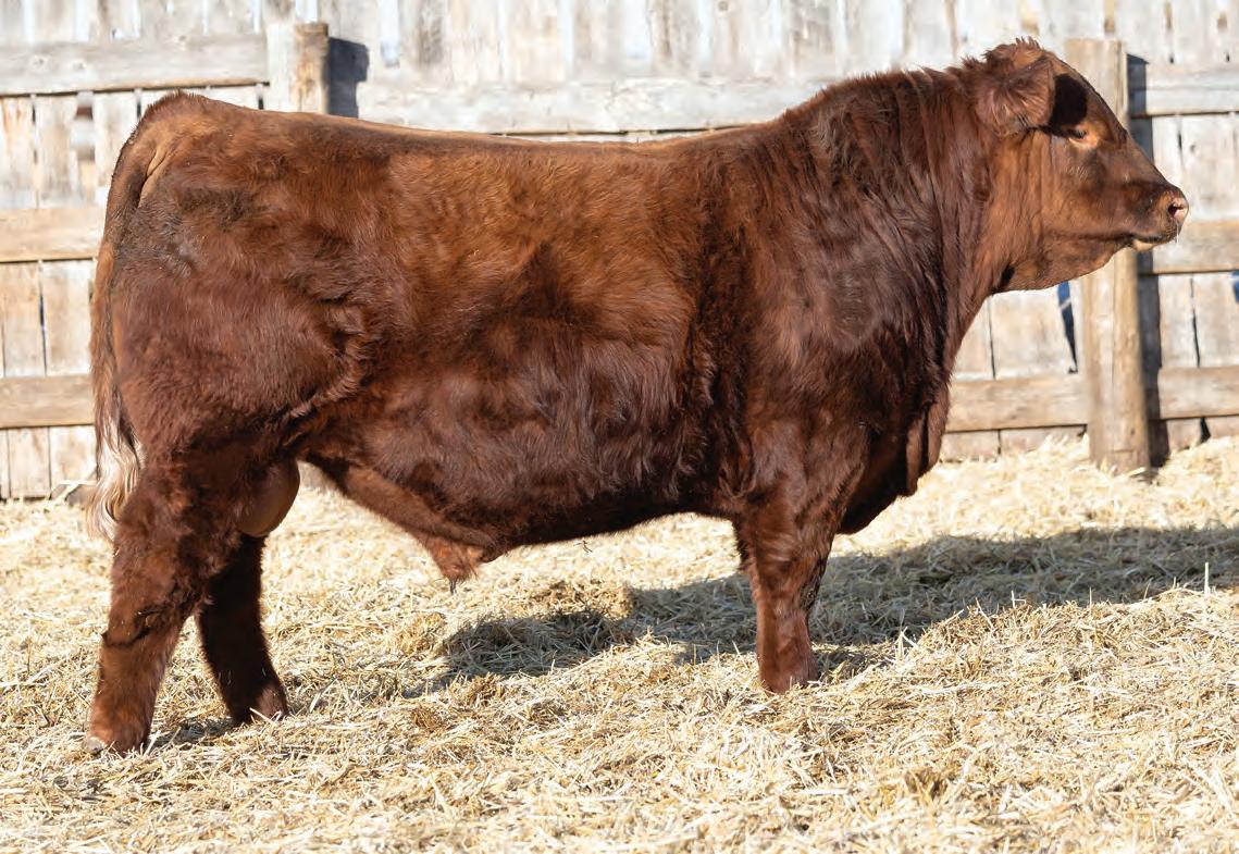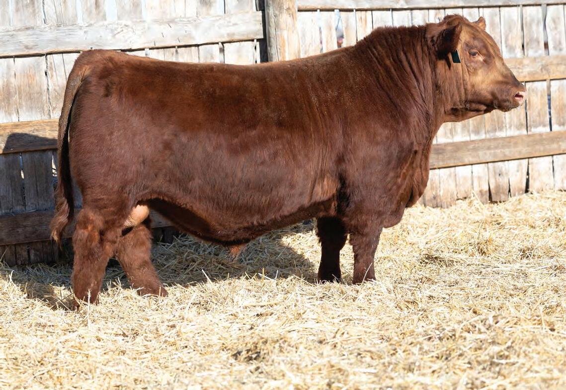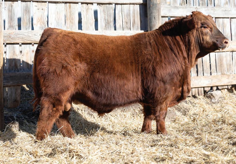 • Massive topped and a stout lower third, one of the best red power bulls to sell this year