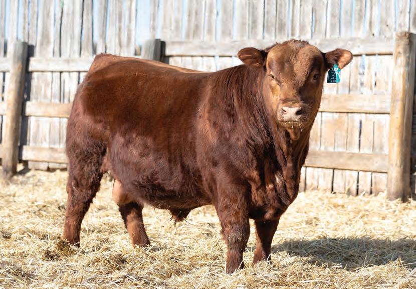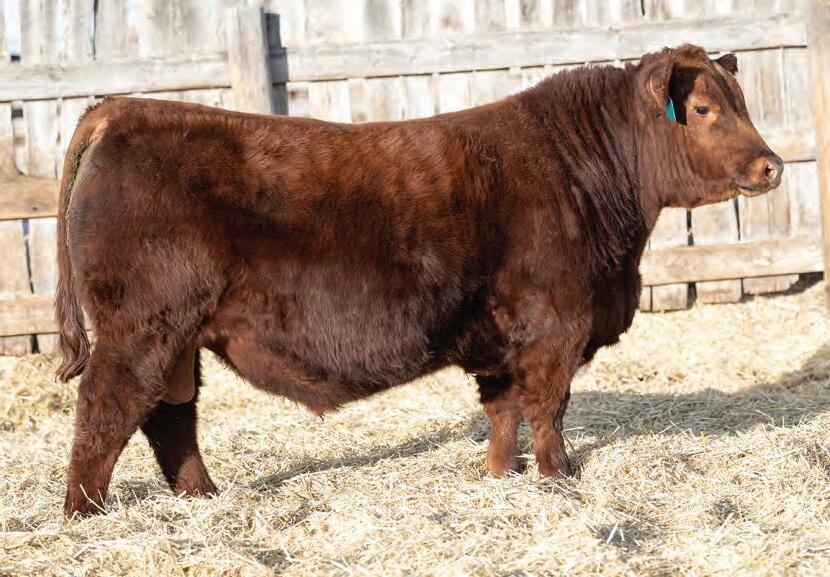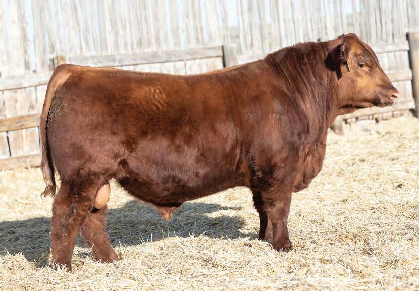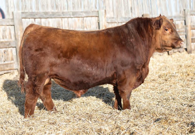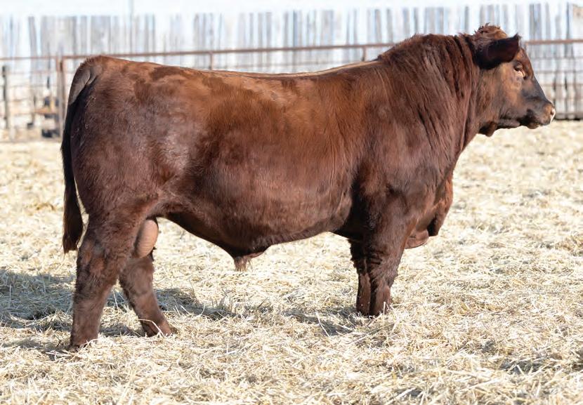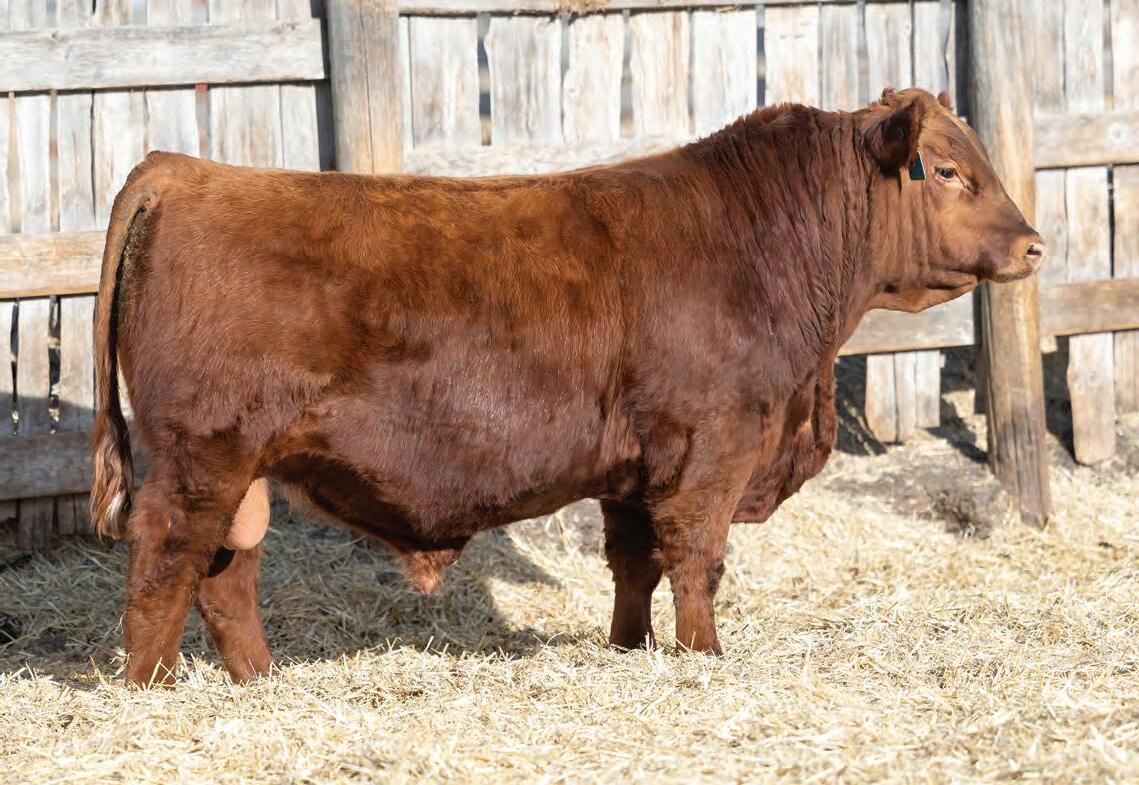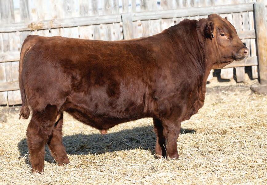 • Massive topped and a stout lower third, one of the best red power bulls to sell this year