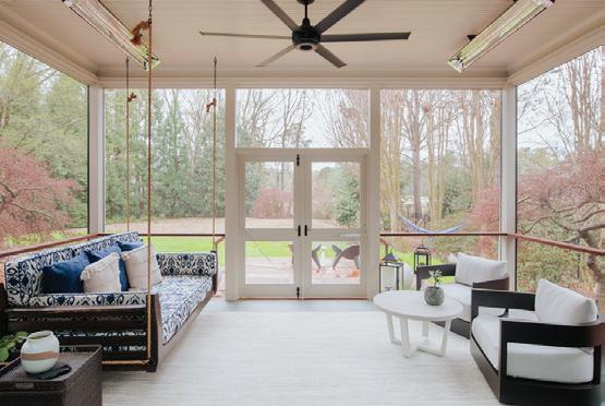 RIGHT The screened porch features heaters and fans to help the family enjoy it as seasonal temperatures fluctuate.