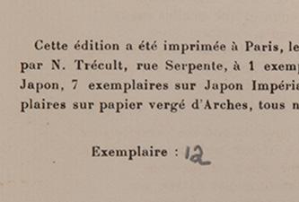 The justification calls for the first 33 examples to have two original drawings, one extra suite of the 36 engravings and two extra suites of the ornaments. This example has 8 original drawings of the plates and 27 original drawings of the ornaments, as well as a volume containing 9 extra suites, six more than is called for.