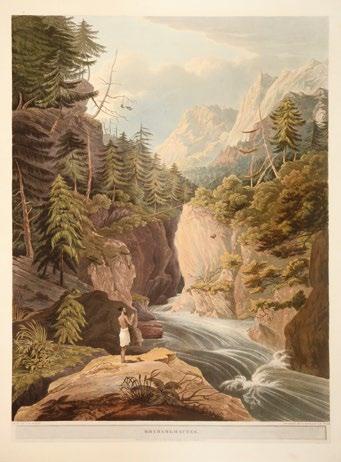 Two volumes 4to (27.3 x 22.5 cm). xxiii including title, 552; xxx incl. title, 523 pp., in all with 28 vignettes including 23 hand-coloured, 51 numbered plates of which 25 folding and 43 hand-coloured, all after Geissler mostly engraved by him and Metland, 4 engr. maps incl. one hand-coloured and 3 folding by Russel, most engravings protected by tissue guards; very occasional light offsetting or spotting. Contemporary polished calf, spines with raised bands, gilt and lettered in gilt in compartments, marbled edges; re-hinged, joints skilfully restored. Abbey Travel 222; Cox I, 199; Hiler 683; Tooley 357.