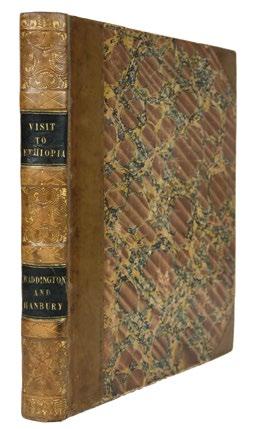 2 volumes, 8vo (23 x 13.5cm.), xx, 592pp.; viii, 730pp., 2 large folding engraved maps, 13 aquatint or lithographed plates [most folding, 1 hand-coloured], contemporary black half morocco, full gilt spines, marbled boards and endpapers, top edges gilt, maps somewhat offset and with short tear, a fine set with good margins. Abbey, Travel 668; Hill (2004) 1826; Sabin 101302.