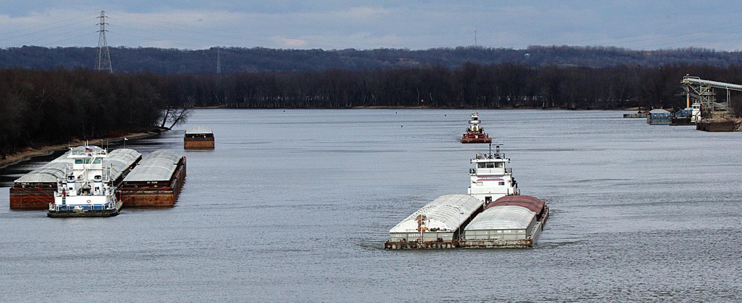 Barge Transport on the Illinois River. Approximately two million tons of commercial cargo is shipped through the Starved Rock Lock and Dam each month.
