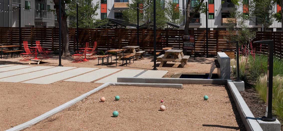 ▪ BOCCE BALL ▪ CORNHOLE ▪ FIREPIT ▪ SEATING ▪ GARDEN AREAS