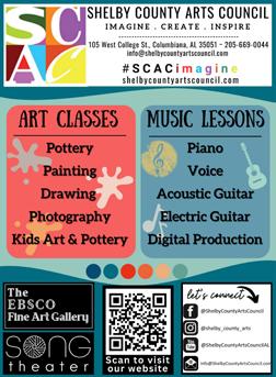 Visit Shelby County is published yearly by Shelby County Newsmedia, Inc., P.O. Box 947, Columbiana, AL 35051. The magazine is published annually and available year-round through Alabama welcome centers, Shelby County area chambers of commerce, and local businesses and organizations. Additional copies may be purchased by calling the SCNI office at 205-669-3131, or by emailing circulation@ shelbycountyreporter.com.