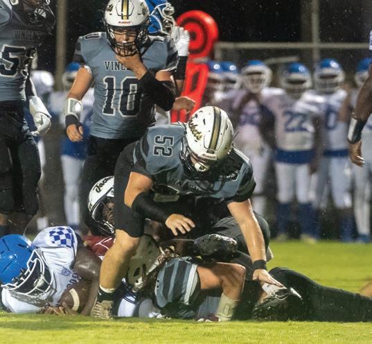 While Albright faced an injury-plagued senior campaign, he was a force at linebacker, making 77 tackles, 16 tacklesfor-loss and five sacks, helping Vincent to early success.