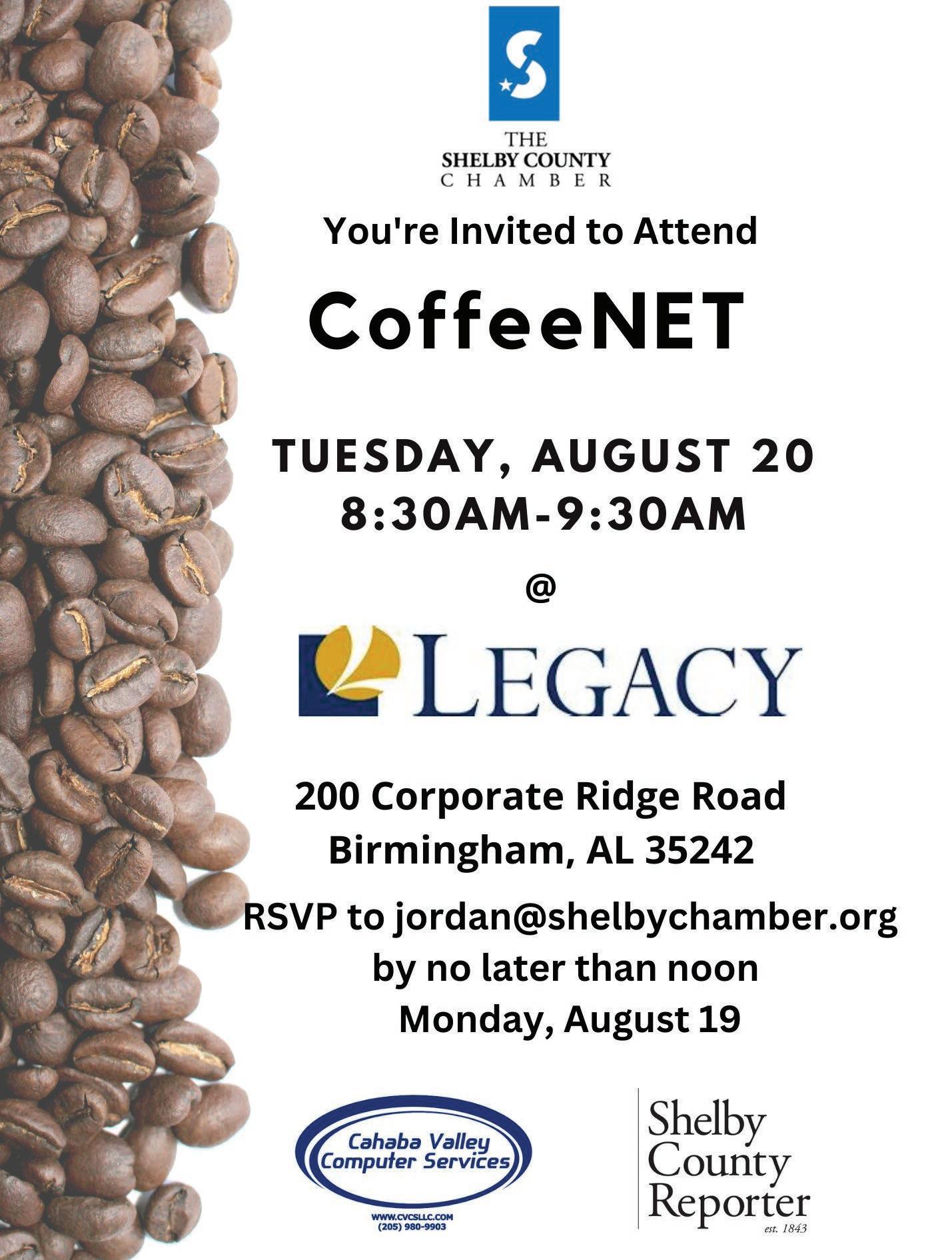 Reservations are required, and space is limited, so please contact the Chamber by email at jordan@ shelbychamber.org or phone at 205-663-4542 to register. All reservations must be made by Monday, Aug. 12 at noon.