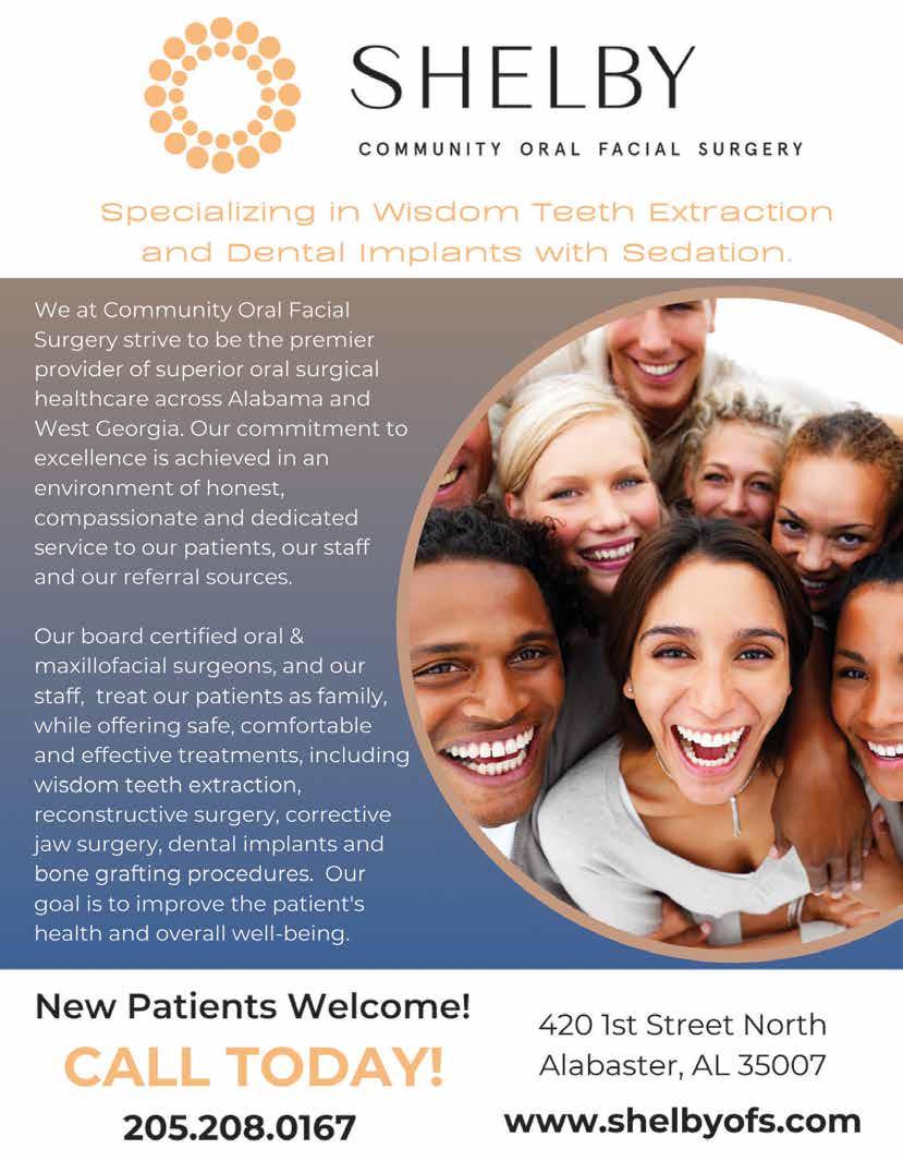Shelby Living Magazine is published bi-monthly by Shelby County Newsmedia Inc., P.O. Box 947, Columbiana, AL 35051. Shelby Living Magazine is a registered trademark. All contents herein are the sole property of Shelby County Newsmedia Inc. [the Publisher]. No part of this periodical may be reproduced without written permission from the Publisher. Please address all correspondence (including but not limited to letters, story ideas and requests to reprint materials) to: Editor, Shelby Living Magazine, P.O. Box 947, Columbiana, AL 35051.