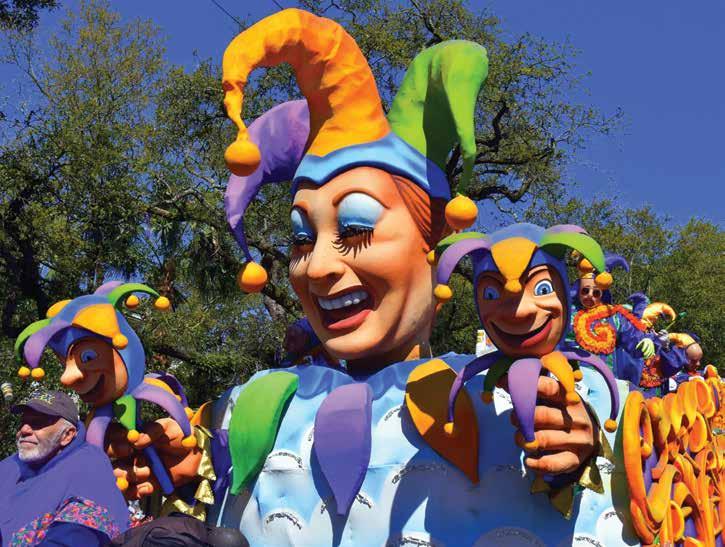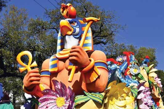 For many, New Orleans is synony mous with Mardi Gras. To be sure, the annual celebration between Kings’ Day and the start of Lent is a sight to behold and experience. Per haps responsible for more than $1 billion in revenue for the city, Mardi Gras is serious business. Go behind the scenes at Mardi Gras World to learn the history of Mardi Gras, see how floats are made and maybe take more than a few Instagram-wor thy photos. mardigrasworld.com