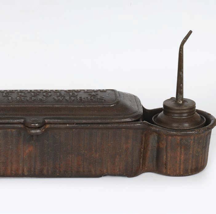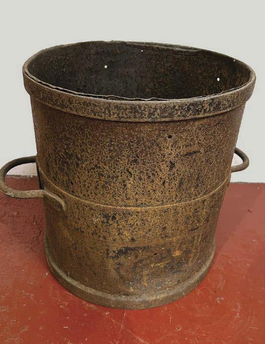 a utilitarian metal cooler used for lowering bottles into wells to keep liquids chilled before the advent of refrigeration.