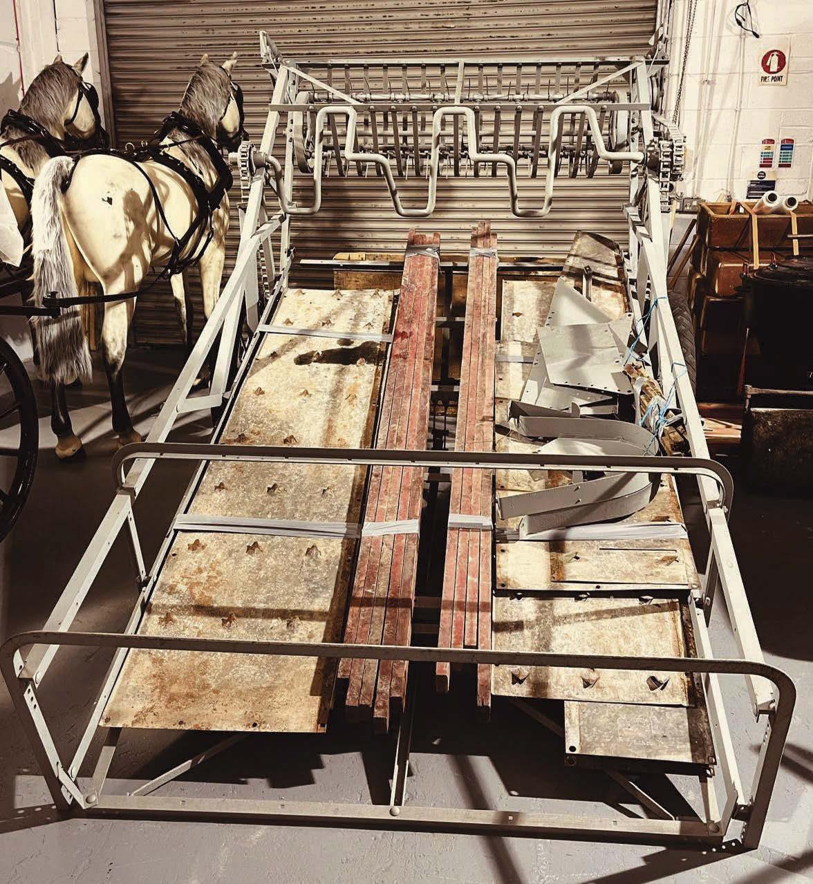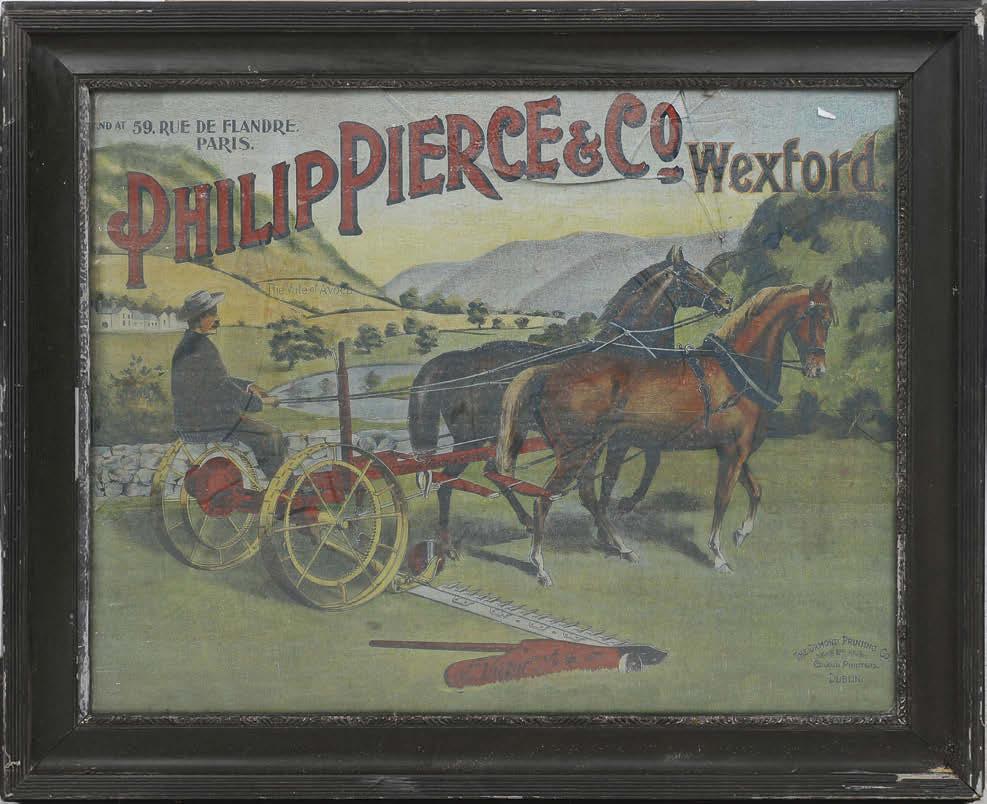 Museum condition, an early agricultural implement manufactured by P. Pierce & Co. of Wexford, illustrating the firm’s prominent role in Irish farming equipment production. 68 cm. wide; 306 cm. long