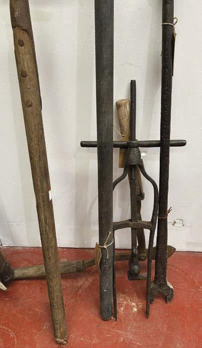 a well-preserved dock lifter made by Brades, an established English manufacturer of agricultural tools. 101 cm. high; 18 cm. wide