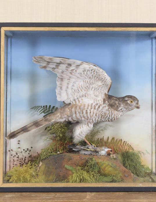 mounted within a glazed wooden case; finely preserved with naturalistic detail.