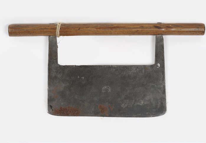 a substantial hand-held cutter, likely used for both baking and herbal preparation, indicative of multi-use domestic tools of the period.