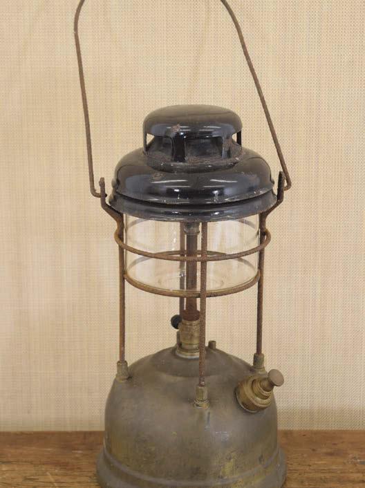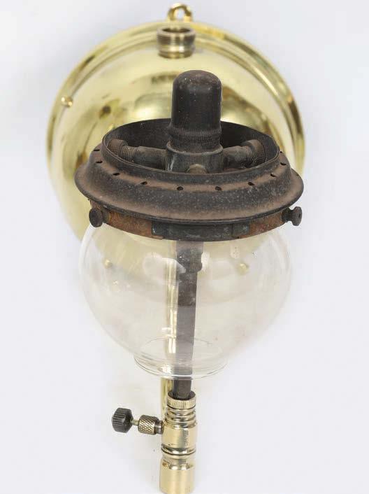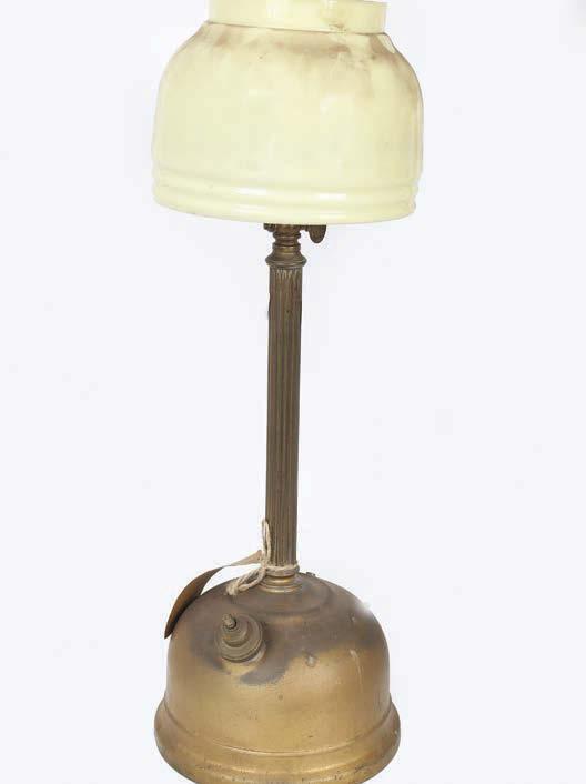 with glass shade and oil reservoir; typical of domestic Irish lighting before electrification.