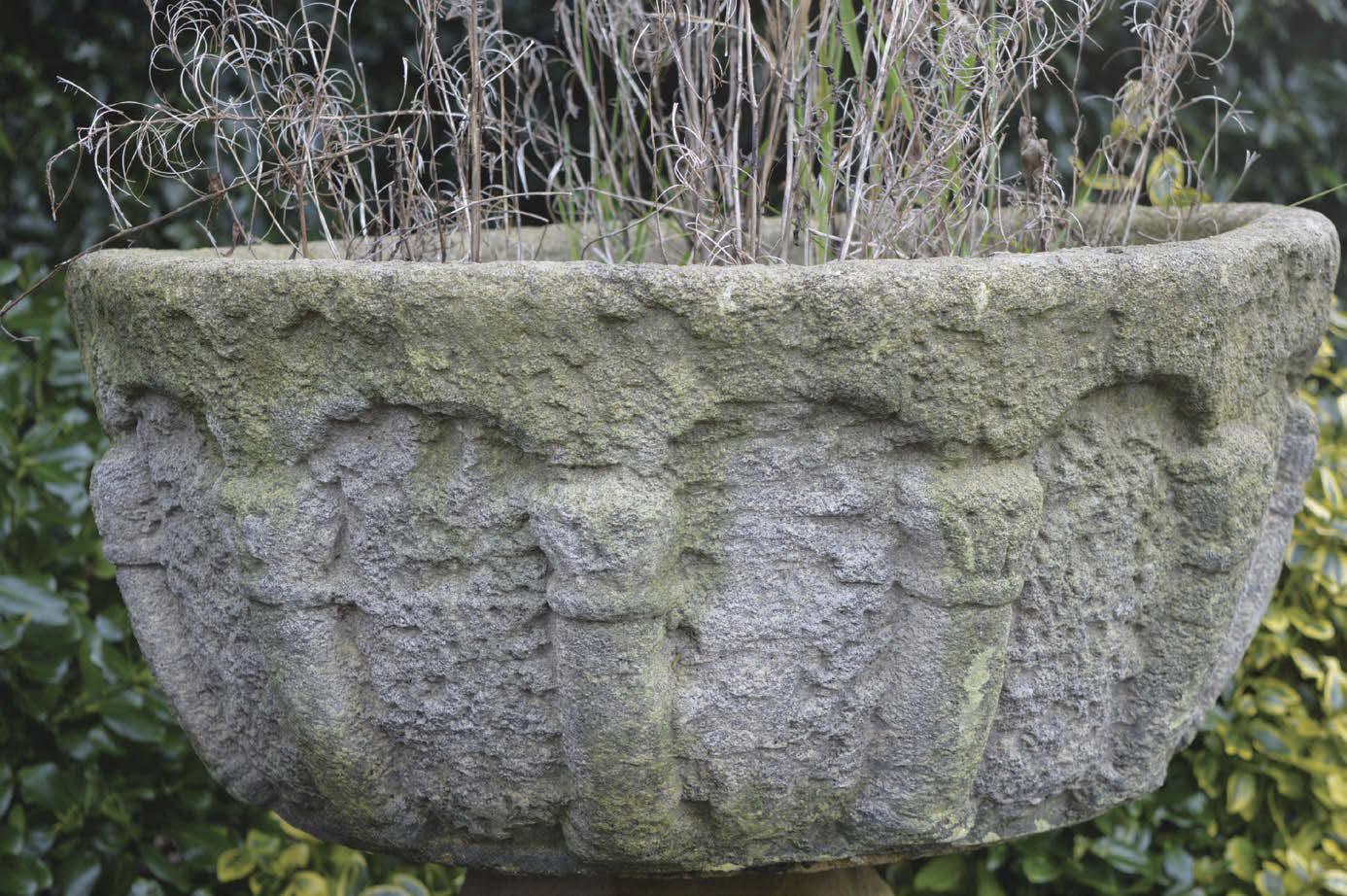 featuring a painted handle marked ‘SLG,’ this planter dates to the Edwardian period and was used for bulb planting in formal gardens.