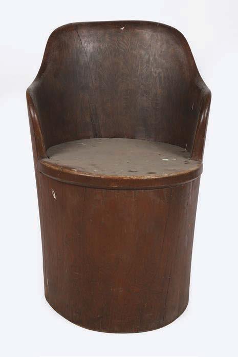 of tapered cylindrical shape, constructed using traditional coopered techniques.