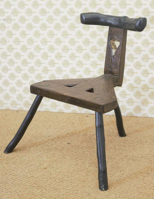 a small, robust three-legged stool of rustic form, typical of Irish country interiors.