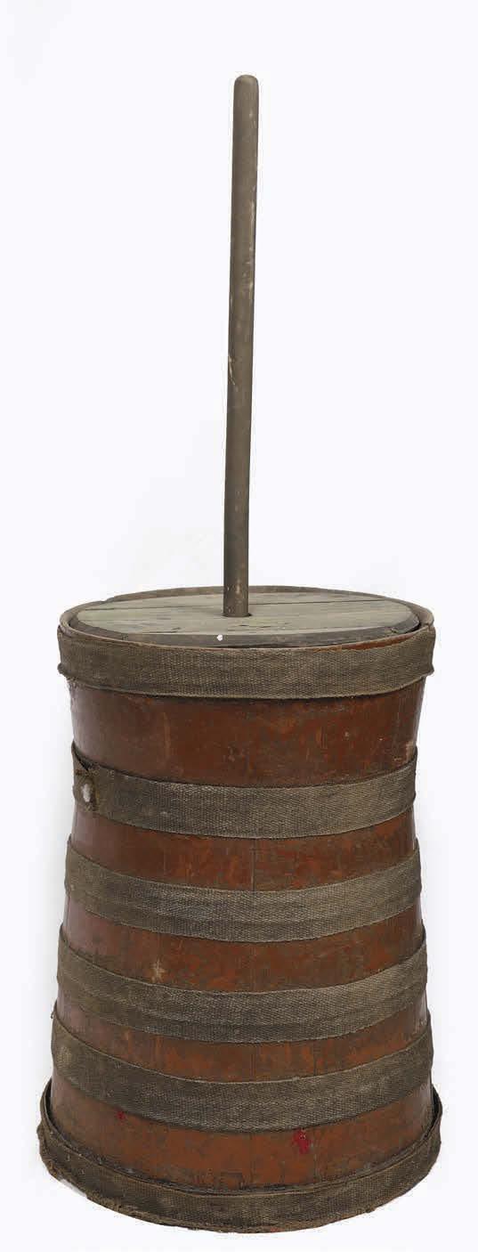 of circular form, turned from a single block; used in traditional Irish butter making.