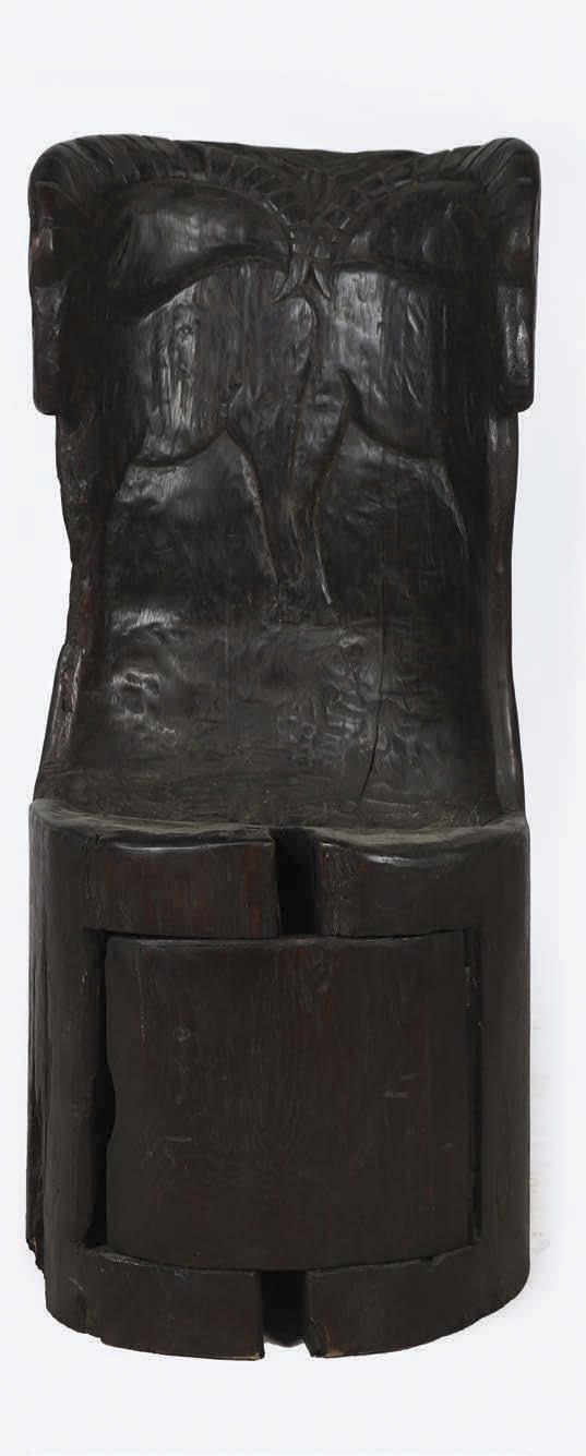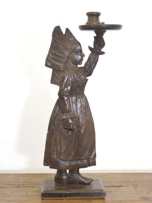 featuring a carved female figure holding a tray; likely used for storing pipes and tobacco.
