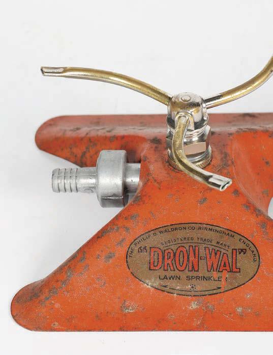 a brightly coloured Dronwal sprinkler from the 1950s, known for its efficient distribution and cheerful design.