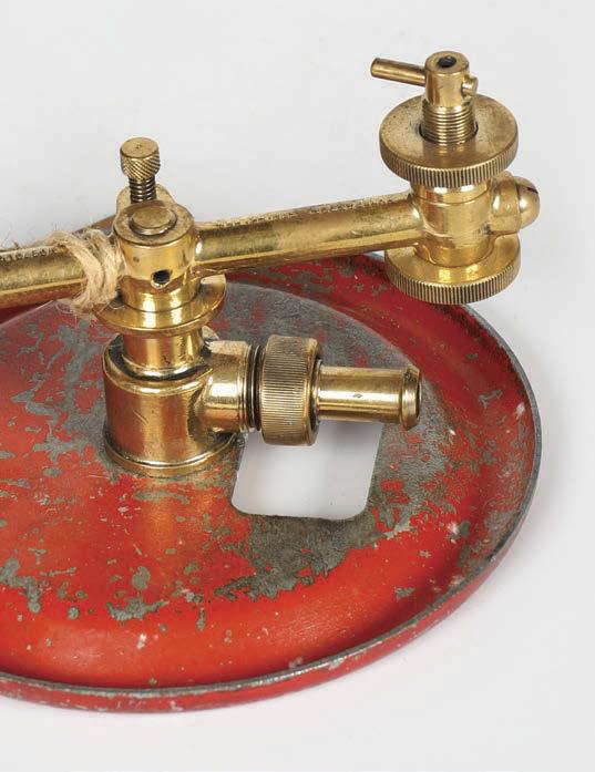 constructed from red-painted iron with copper and brass fittings, a striking and unusual design.