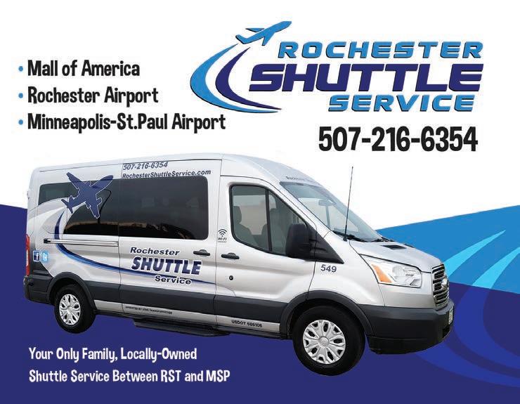 private driver using any smartphone device. Uber uber.com/cities/rochester-mn Lyft lyft.com/rider/cities/rochester-mn VAN/SHUTTLE Local destinations including home or hotel. GO Airport Shuttle .844-787-1670 goairportshuttle.com/rochester_rst_airport_shuttle Rochester Shuttle Service .507-216-6354 rochestershuttleservice.com TRANSPORTATION GUIDE ROCHESTER WORSHIP 76 Published by: AWARD WINNIN G BREAKFAST DI NNER L UN CH ONLINE ORDERIN G AVAILABLE FRE E PAR KING | OUTDOOR SEATING FULL SERVICE BAR | LIVE ENTERTAINMENT APPAR EL FOR PURCHASE OPEN 7 DAYS A WEEK | 7 :00 A.M.- 10:00 P.M VISIT CANADIANHONKER.COM FOR A COMPLETE LIST OF MENU ITEMS 507-282-6572 | 1203 2ND STREET SW | ROCHESTER, MN | FREE PARKING ACROSS FROM ST MARYS DIRECTORY Rochester Trolley & Tour Co. ROCHESTER HISTORY TOUR Get ready to experience the story of Rochester aboard our vintage trolleys with our amazing guides. This is the ideal tour for first time visitors. Duration: 1.5 Hours Price: $40 Adults | $12 Children Please see website for details. COUNTRY BLUFF WINERY TOUR Take a luxury vehicle through SE Minnesota’s gorgeous bluff country to visit a trio of wineries. This region is a rising star in the wine world. Duration: 5.5 Hours Price: $115 Adults Please see website for details. Book Online Today! 507-421-0573 | rochestermntours.com