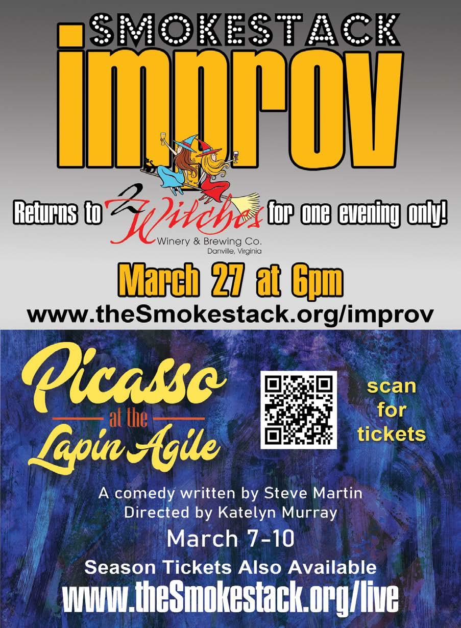 Editorial Policies Evince is a free monthly magazine about Arts and Culture in Danville and the surrounding area. We reserve the right to accept, reject and edit all submissions and advertisements. EVINCE MAGAZINE 753 Main St. Suite 3 Danville, VA 24541 www.evincemagazine.com 434.709.7349 © 2024 All rights reserved. Reproduction or use in whole or in part in any medium without written permission of the publisher is strictly prohibited. Deadline for this and all other stories, articles, and calendar items is Friday, March 15 at 5:00pm for the May issue. Please send calendar info to demontdesign@verizon.net. Content March 2024 Investing In Yourself May Seem Risky at First, But It’s Worth It by Paul Seiple Collage Inside OWE Arts & Culture Exhibit: Harper Scollo by Val-Rae Lindenau March Calender Action! Inside the Method of Acting Ashley Jones by Emily Wilkerson The Poet’s Corner Racing by Barry Koplen The Meeting by Linda Lemery Movies You Missed from 20 years ago by Josh Lucia A Grand Day Out! by Mack Williams 5 12 14 8 11 7 9 Collage Inside OWE Arts & Culture Exhibit Harper Scollo P. 7 10