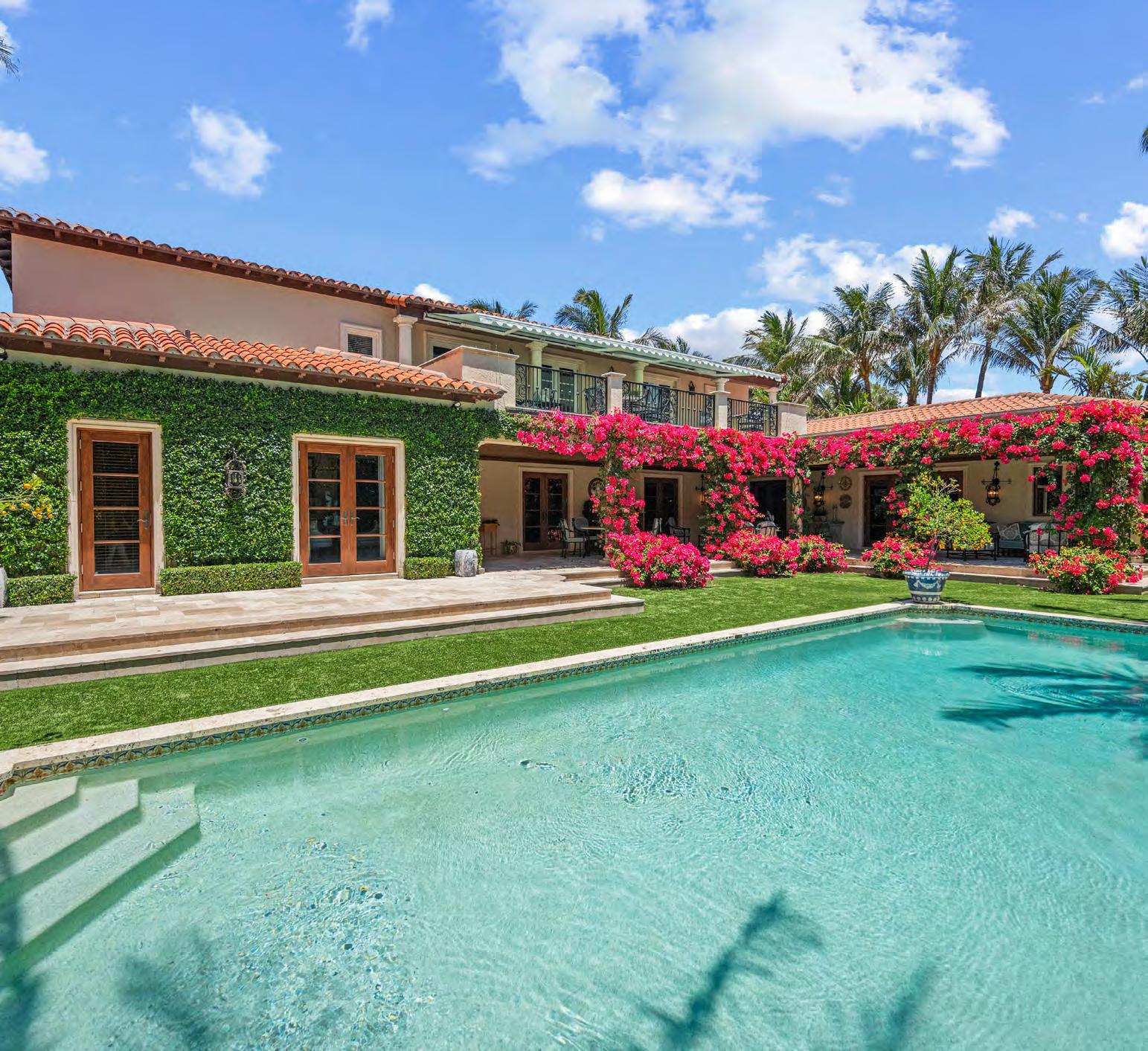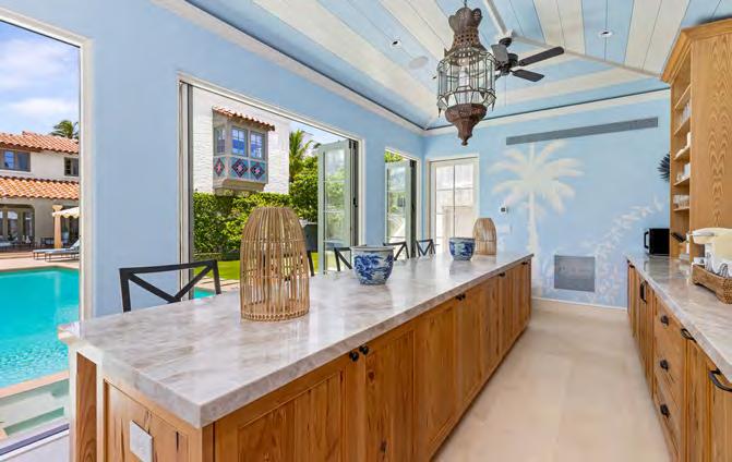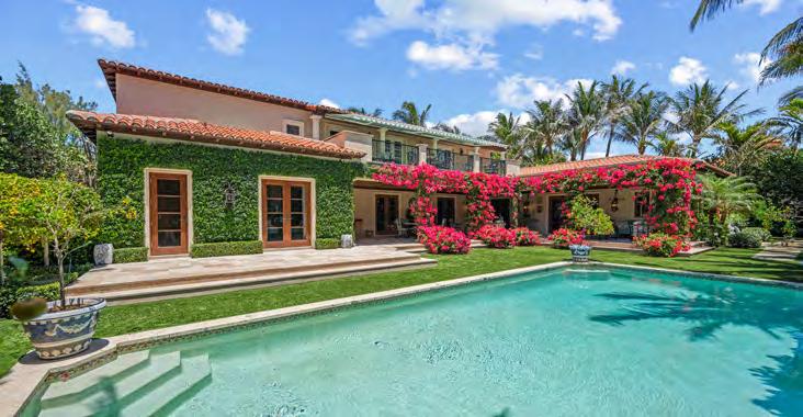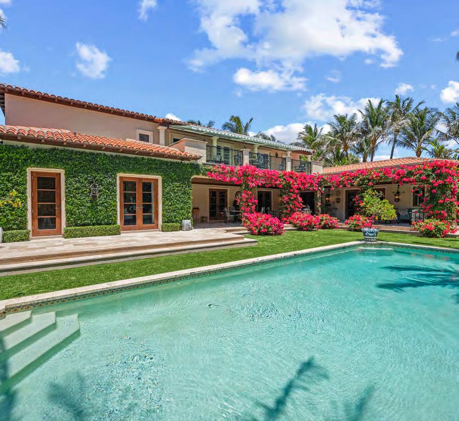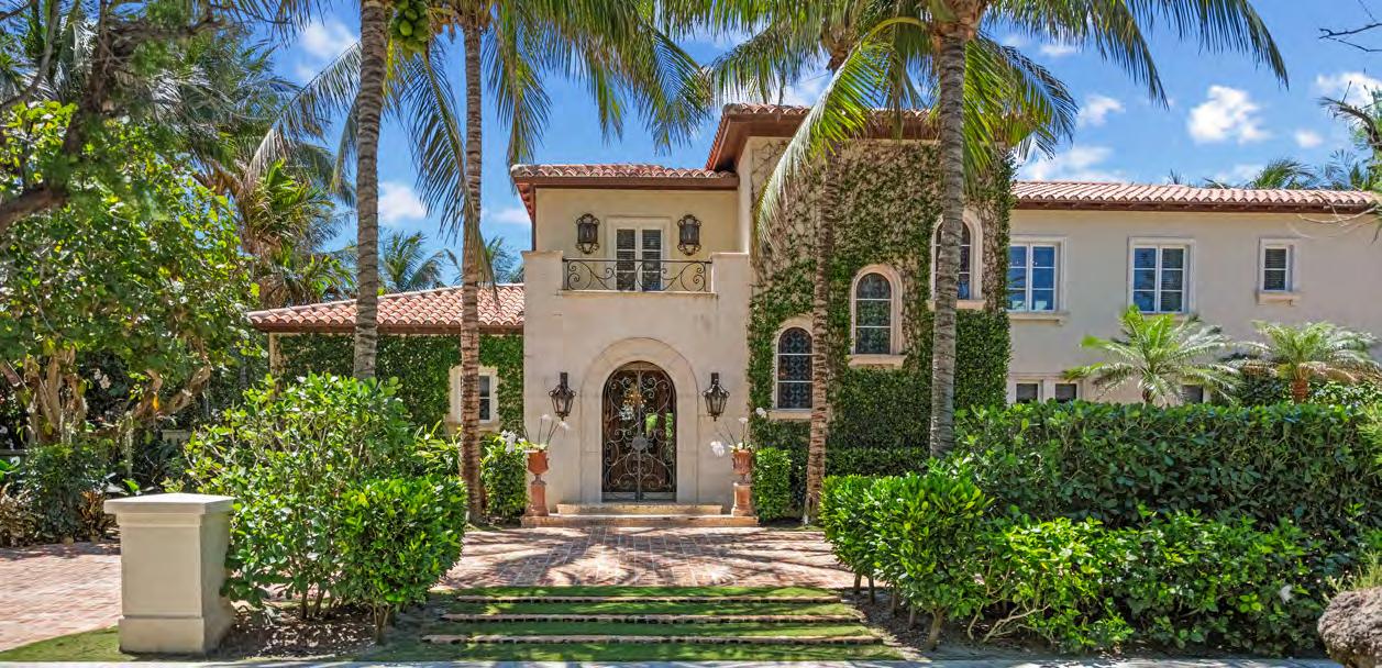 Tailored for the Palm Beach lifestyle, this home is rich in character. It features a dramatic Mizner-style beamed living room, a gourmet eat-in kitchen, a grand entryway, and an elevator.