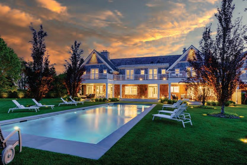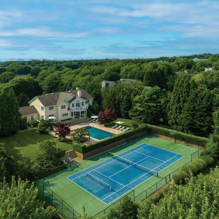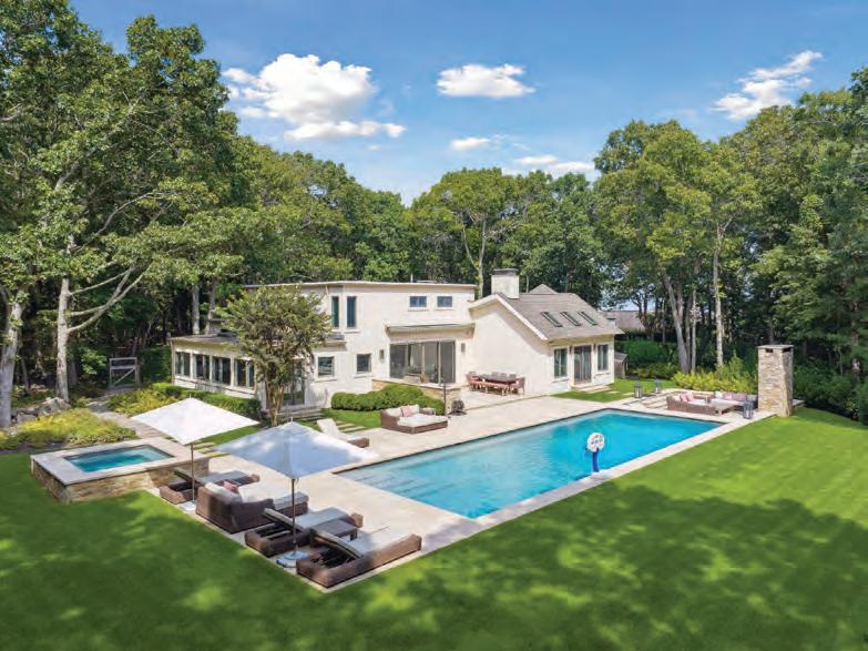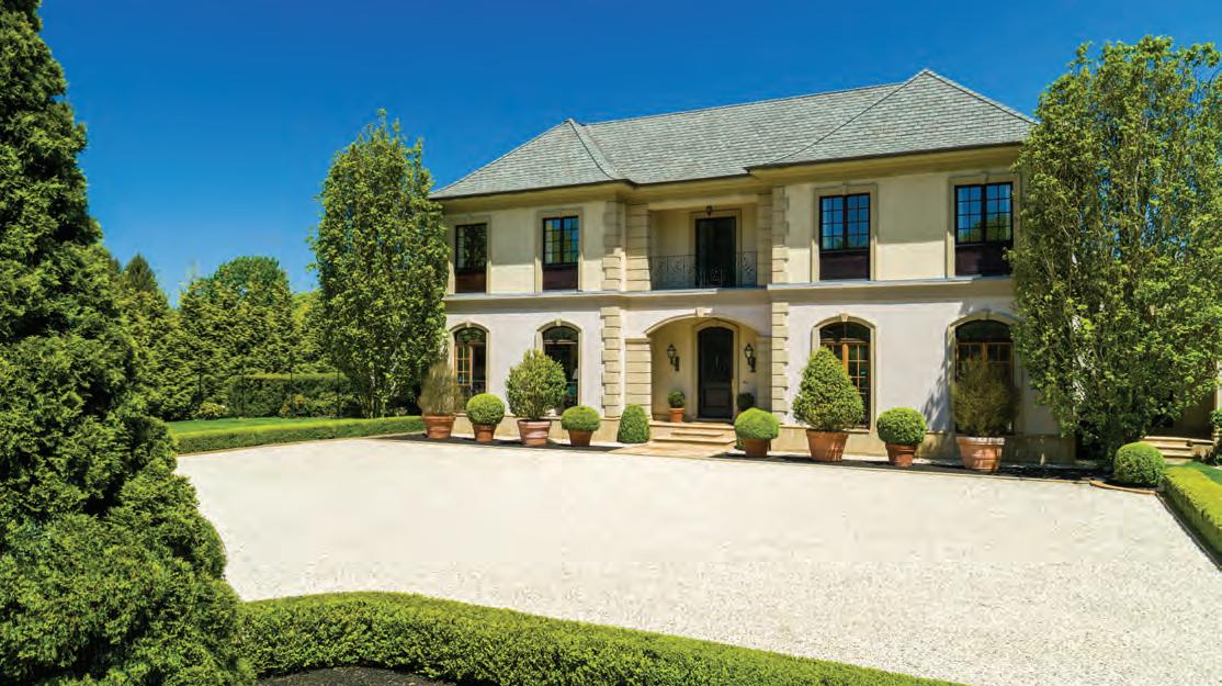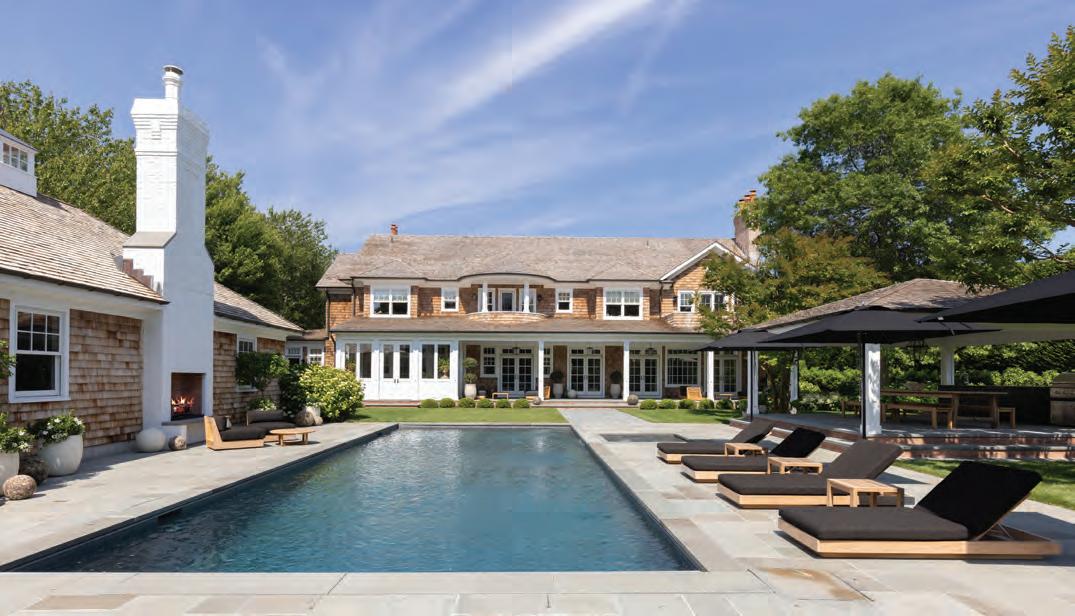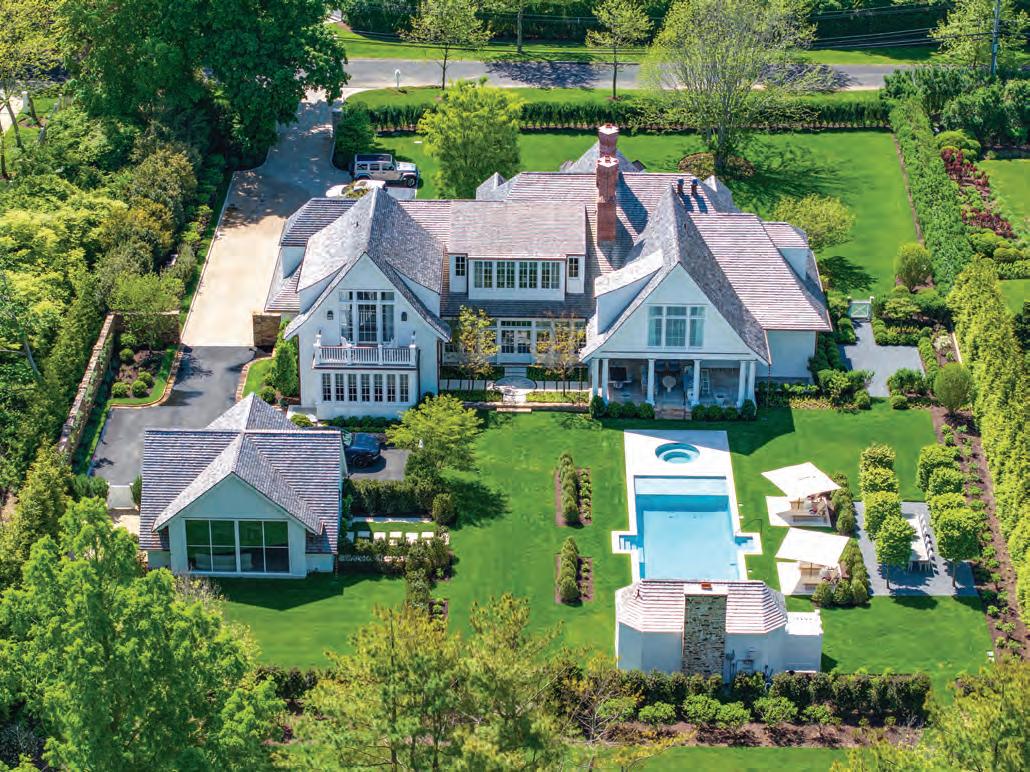 East Hampton. Nestled majestically on 1.12+/- acres along Hither Lane, James Michael Howard’s architectural masterpiece offers timeless elegance and classical inspiration. A sprawling 11,644 SF+/- residence offers a rare opportunity for a oncein-a-lifetime experience. Upon arrival, guests pass through stone columns, leading to a sanctuary of bespoke furnishings and amenities including a heated Gunite pool, pool house, and a detached 2-car garage. Every inch of this fully furnished home exudes opulence and sophistication, offering 8 bedrooms, 8 full and 1 half bathrooms, and an elevator servicing three levels. Stepping inside, one discovers a grand entrance featuring a double-height foyer and gracious staircase. The drawing room meticulously adorned, features a 14’ ceiling, custom fireplace as well as a host of curated furnishings. The kitchen is a culinary triumph, equipped with top-tier appliances a large center island with oversized Mick de Giulio sink, all set amidst luxurious marble and glass infused countertops ending with a charming windowed 12 seat banquet. The handsome family room offers another custom fireplace, 72” TV and comfortable seating to savor it all. The main floor’s primary suite is a retreat of unmatched elegance, complete with a steam shower, tub, European style walk-in closets, and a cozy fireplace. Ascend to the second level to discover a featured guest suite with fireplaced bathroom and three additional en-suite bedrooms, one of which features a private balcony offering breathtaking views of the grounds. Creativity knows no bounds in the expansive lower level, where a billiard room with gas fireplace, screening room and an additional guest bedrooms await. A covered outdoor living room with beige madras stone patios overlooks the 48’ X 18’ heated Gunite pool with sun shelf, separate spa, and pool cabana with a wood-burning fireplace, creating a serene oasis embraced by a meticulously manicured landscape design installed by Verderber’s Landscape Nursery. This magnificent estate, situated less than a mile from the ocean and moments from village amenities, shops, and restaurants, offers a lifestyle of unparalleled grandure and refinement. To deeply appreciate the splendor of this Hamptons lifestyle, a personal viewing is necessary. Contact us today for a glimpse into the epitome of Hamptons living. Co-Exclusive. $24.95M WEB# 909057