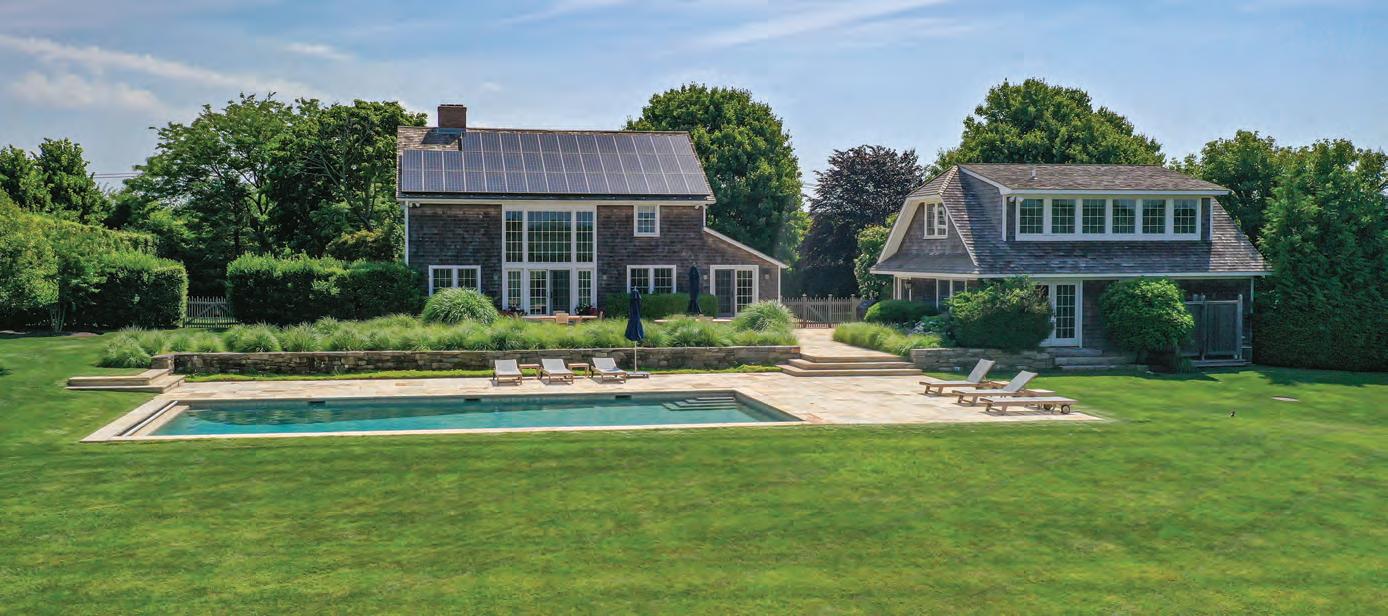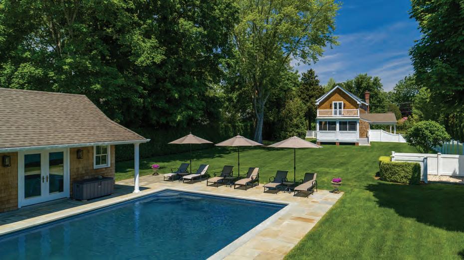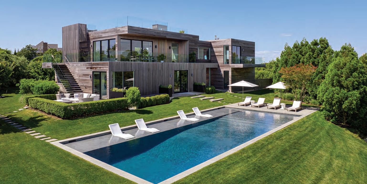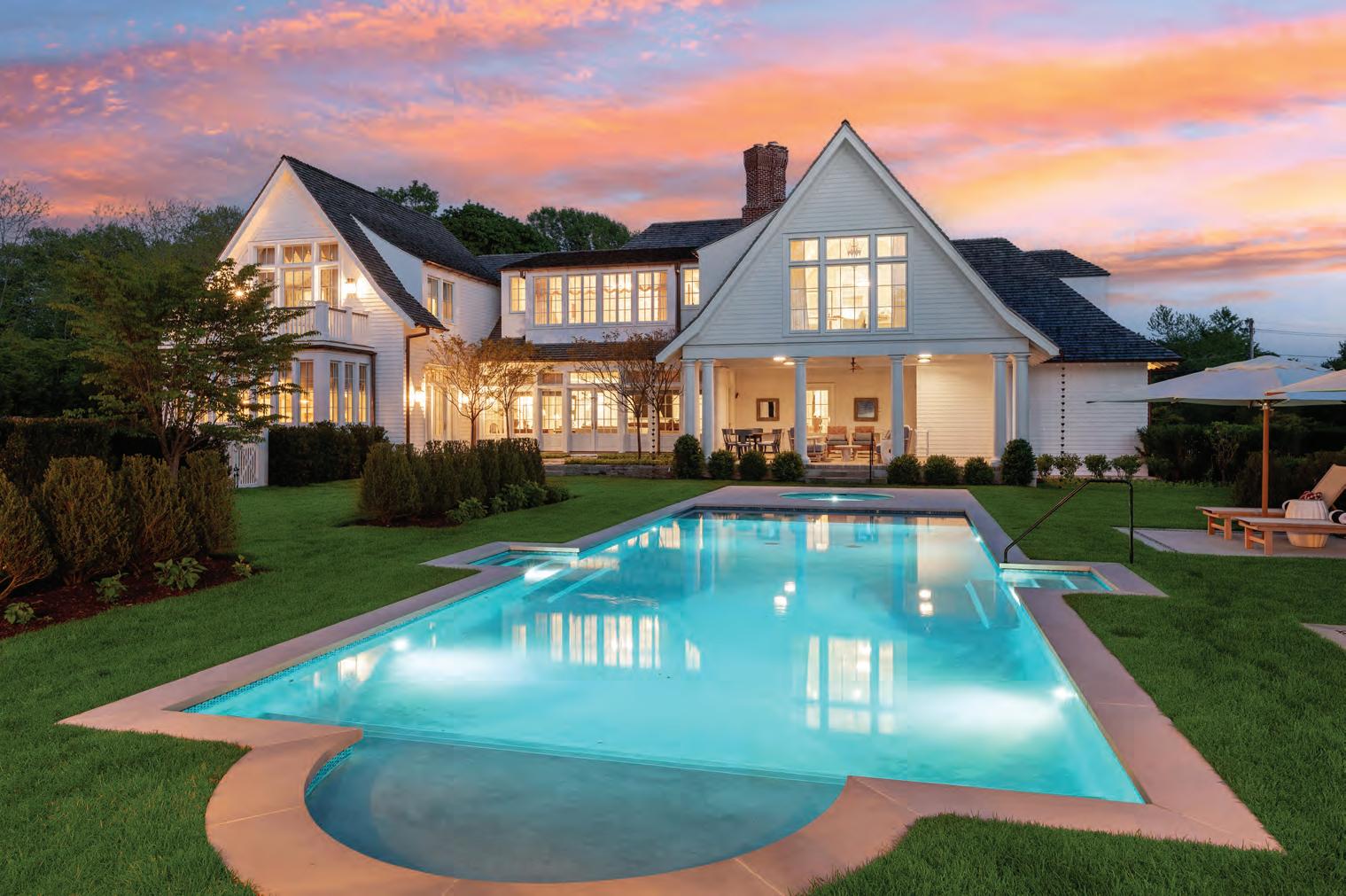 East Hampton. Nestled majestically on 1.12+/- acres along Hither Lane, James Michael Howard’s architectural masterpiece offers timeless elegance and classical inspiration. A sprawling 11,644 SF+/- residence offers a rare opportunity for a oncein-a-lifetime experience. Upon arrival, guests pass through stone columns, leading to a sanctuary of bespoke furnishings and amenities including a heated Gunite pool, pool house, and a detached 2-car garage. Every inch of this fully furnished home exudes opulence and sophistication, offering 8 bedrooms, 8 full and 1 half bathrooms, and an elevator servicing three levels. Stepping inside, one discovers a grand entrance featuring a double-height foyer and gracious staircase. The drawing room meticulously adorned, features a 14’ ceiling, custom fireplace as well as a host of curated furnishings. The kitchen is a culinary triumph, equipped with top-tier appliances a large center island with oversized Mick de Giulio sink, all set amidst luxurious marble and glass infused countertops ending with a charming windowed 12 seat banquet. The handsome family room offers another custom fireplace, 72” TV and comfortable seating to savor it all. The main floor’s primary suite is a retreat of unmatched elegance, complete with a steam shower, tub, European style walk-in closets, and a cozy fireplace. Ascend to the second level to discover a featured guest suite with fireplaced bathroom and three additional en-suite bedrooms, one of which features a private balcony offering breathtaking views of the grounds. Creativity knows no bounds in the expansive lower level, where a billiard room with gas fireplace, screening room and an additional guest bedrooms await. A covered outdoor living room with beige madras stone patios overlooks the 48’ X 18’ heated Gunite pool with sun shelf, separate spa, and pool cabana with a wood-burning fireplace, creating a serene oasis embraced by a meticulously manicured landscape design installed by Verderber’s Landscape Nursery. This magnificent estate, situated less than a mile from the ocean and moments from village amenities, shops, and restaurants, offers a lifestyle of unparalleled grandure and refinement. To deeply appreciate the splendor of this Hamptons lifestyle, a personal viewing is necessary. Contact us today for a glimpse into the epitome of Hamptons living. Co-Exclusive. $24.95M WEB# 909057