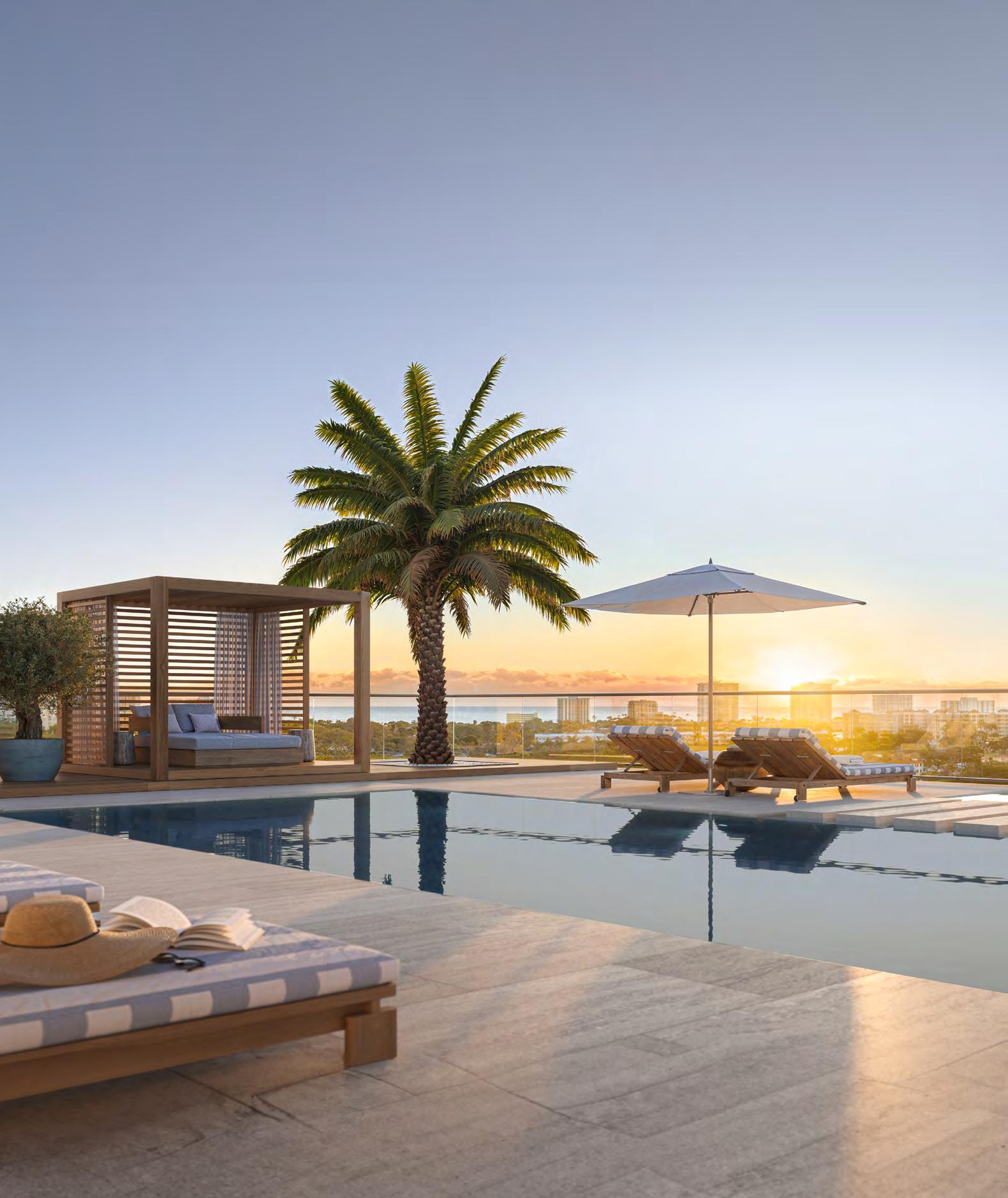 Sitting pretty on the Intracoastal Waterway, the Arquitectonica-designed Olara in the up-and-coming northern district of West Palm Beach will feature two acres of indoor-outdoor amenities (including a Japanesestyle Onsen), a waterfront leisure pool with private cabanas, and a José Andrés–helmed restaurant on the ground floor, but the real draw is its easy access to the water (not as common a perk as one might expect from West Palm Beach): the building has a private dock with direct Intracoastal access, including six boat slips exclusively for residents.
