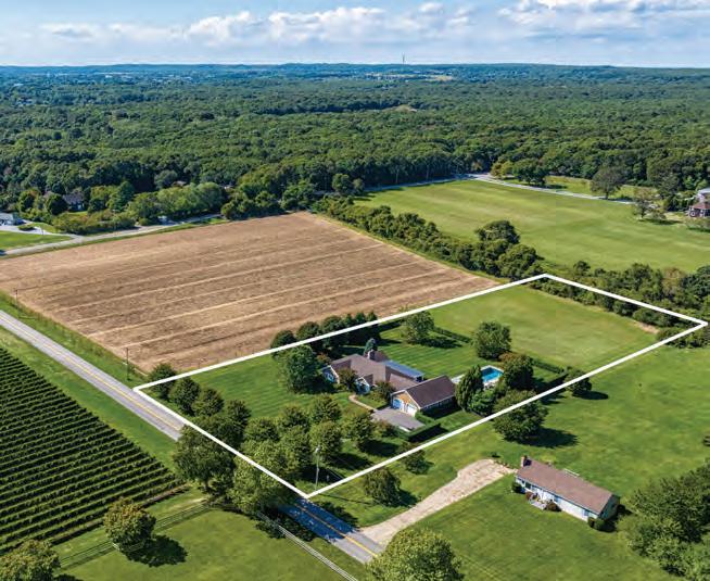 Just Reduced | Sagaponack Village | Now $5,995,000 | 3 BR, 3.5 BA | This iconic 2.23-acre property offers vistas of farm fields and vineyards. Features a gunite pool, patio, 4-car garage and room for tennis. elliman.com/H378799