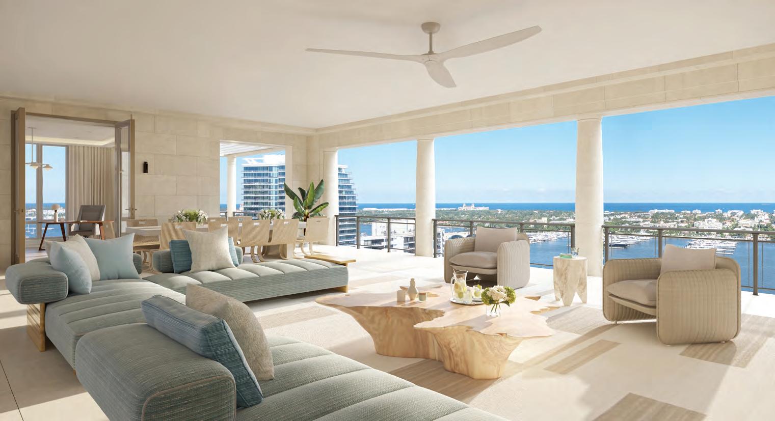 Residential interiors and amenity spaces reflect the global culture and oceanside energy that gives West Palm Beach its unique character and soul. Rich, natural materials, open, light-filled layouts, ocean-inspired elements and masterful craftsmanship touch every detail of design.