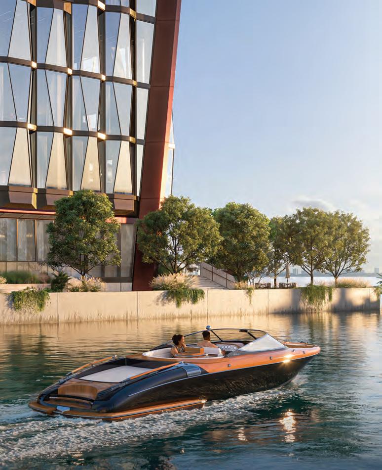 into everyday life. With nods to the ambiance of iconic hotel lounges and private members’ clubs, the tower’s interiors, led by Gabellini Sheppard and Anda Andrei, create warmth and sophistication, layered with eclectic charm and timeless touches.