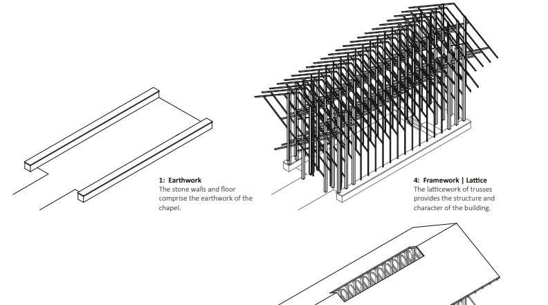Architectscarefully design and articulate the joints,using techniquessuch as mortise and tenon, dovetail, or metal fasteners to ensure structural integrity while creating a visually captivating effect. The articulation of joints allows for the expression of movement, lightness, and flexibility in the constructed form. In conclusion, tectonic architecture embraces the art of construction, celebrating the expressive potential of materials, structural systems, and connections. By focusing on the tectonic qualities of a building, architects can create visually striking structures that not only showcase the craftsmanship but also provide a deeper understanding of the construction process. Digital fabrication and reconstructions appear to have a strong potential to resolve complex issues of the restoration of spatial and very fragmented vaulted forms, communicating the role and potential of architectural technology. Beyond the designer, tectonics can be a valuable vehicle for stronger engagement of users if used with some degree of humility when communicating contemporary values of interventions to local communities. Tectonics is included in the practice of architecture because it provides a way to start a dialogue between the elements that make up architecture.