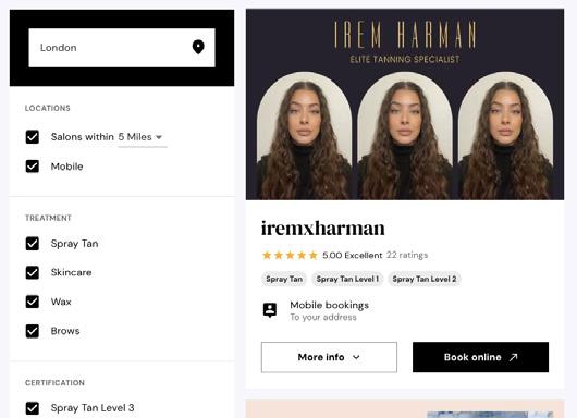 Marketing your business: Promote, promote, promote. Take advantage of our tailored marketing materials. Linking up with other local businesses is a great way of encouraging new clients, such as hairdressers. Always ask your client to leave a review – word of mouth is an invaluable tool. Up Sell: Offer your clients extras to increase their experience, for example gradual tanning products to help them maintain their perfect glow for longer. This is a great way to increase your revenue and keep your clients happy.