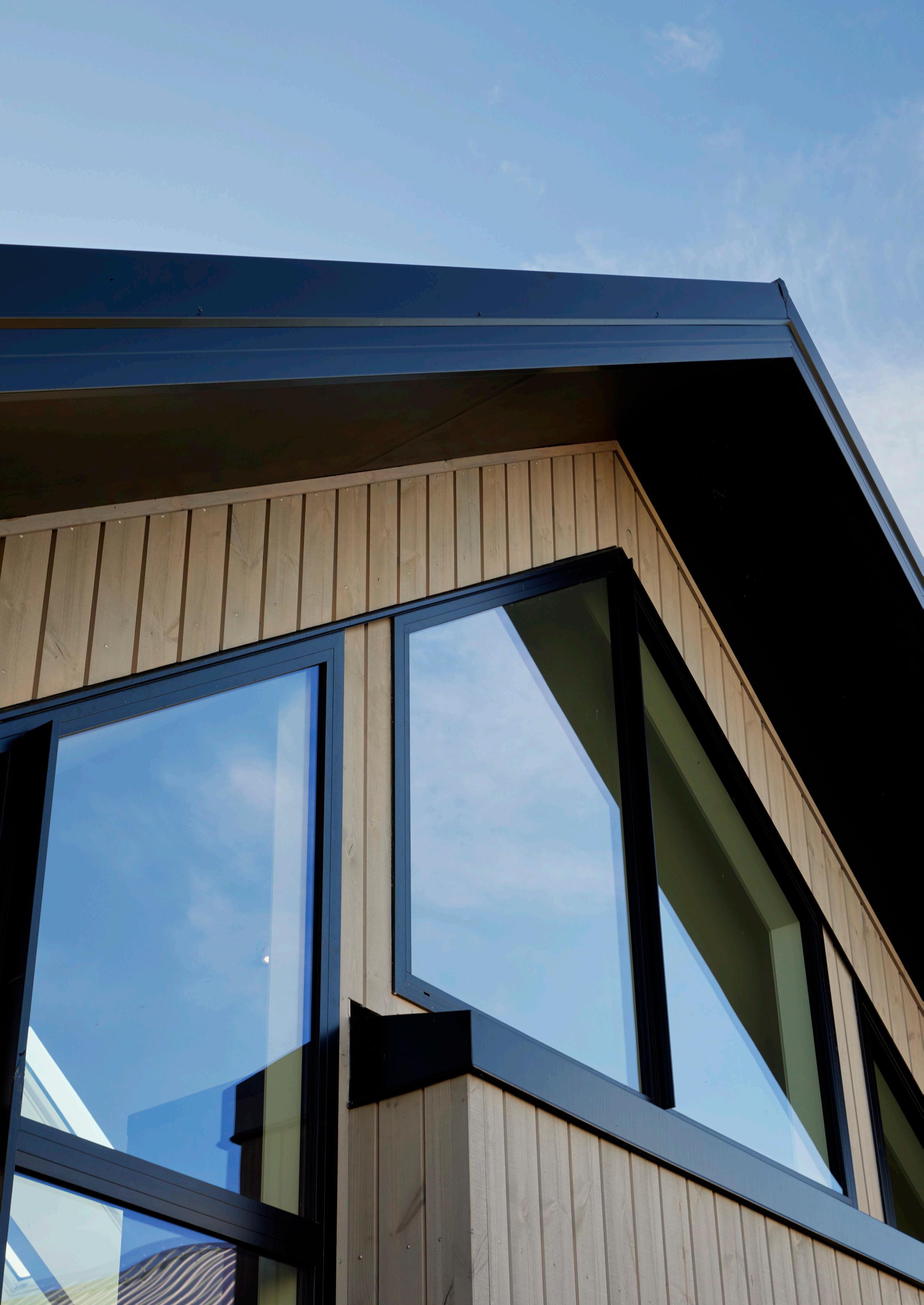Embracing a timeless blend of aesthetics and functionality, the exterior of the Matakana build is defined by a soft color palette of light wood timber, radiating clean lines and accentuated by a bold infusion of black joinery, which adds depth and a touch of refinement to the design.