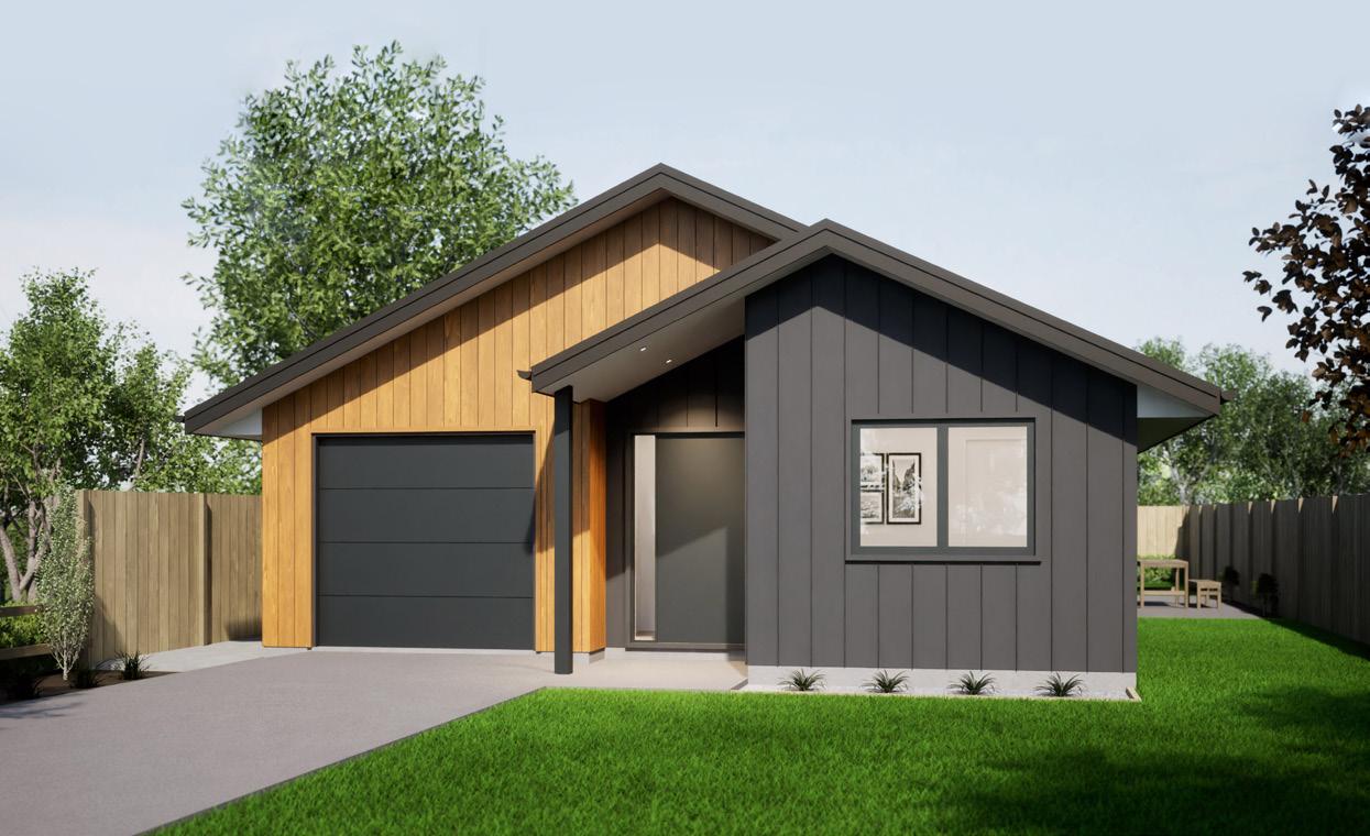 Offering great comfort and a practical floorplan, the Hauroko combines a traditional layout paired with a thoughtful use of space. The design includes three double bedrooms, one bathroom and a spacious open-plan living area which opens onto a generous North facing outdoor living.
