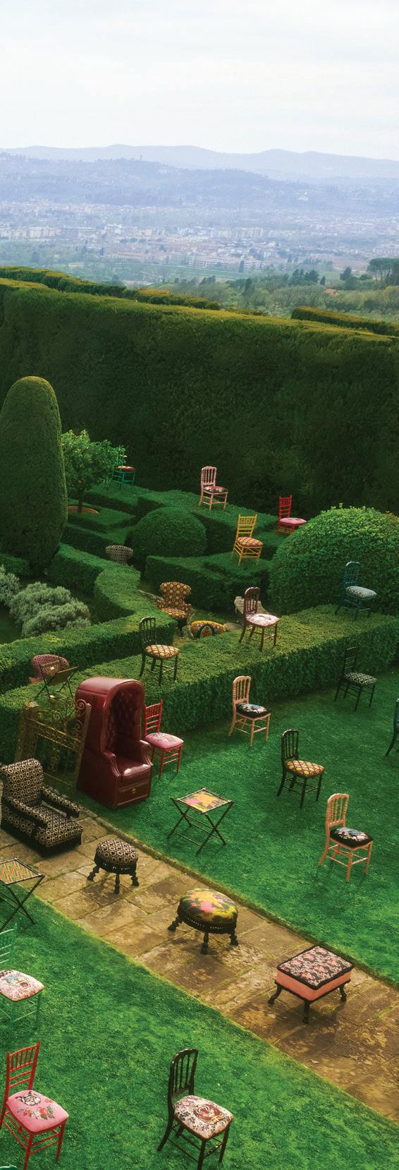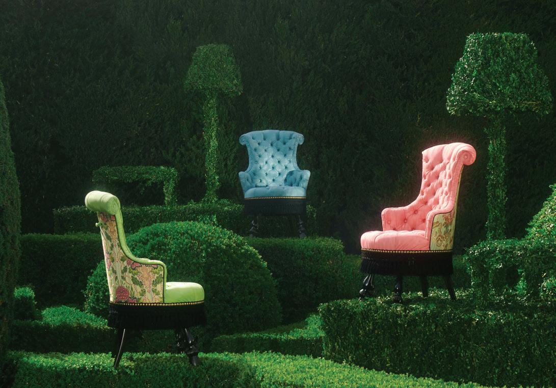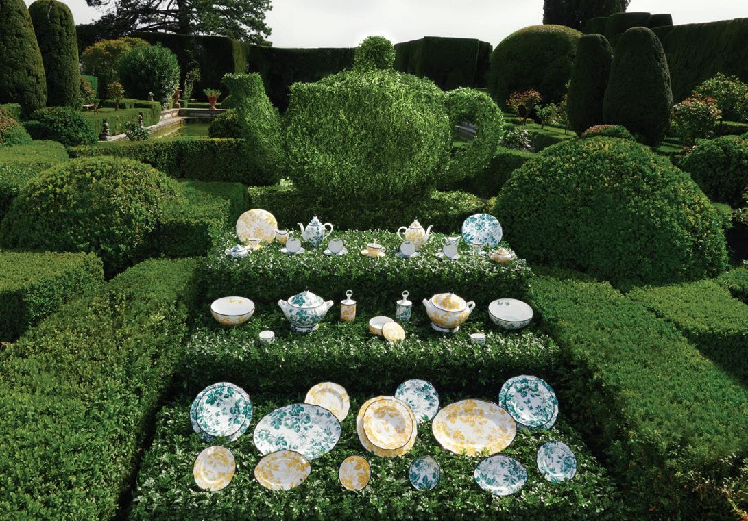 The flawless shapes carved out of the hedges are echoed by the pieces, while the lush green provides a poetic background from which the natural curiosities, seen throughout the collection, can faithfully emerge.