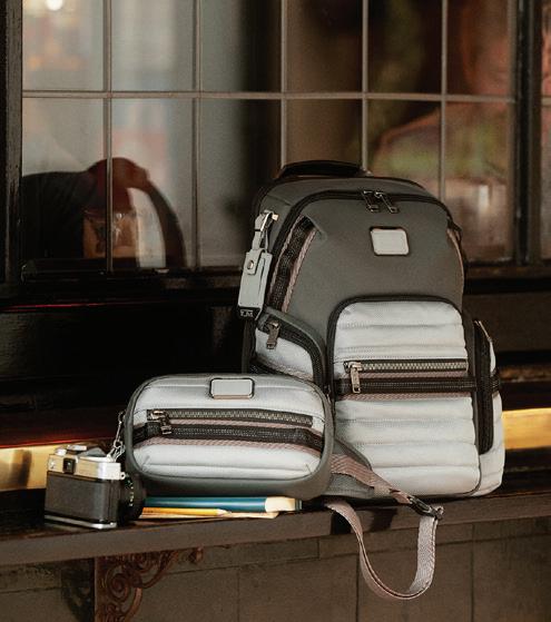 Tumi+ is a system of add-ons that enhance the carrying capacity and function of select styles. It grows this season with even more additions that will help uncomplicate any journey. Tumi has expanded its Alpha Bravo collection with new lightweight, minimalist fabrications and colors.