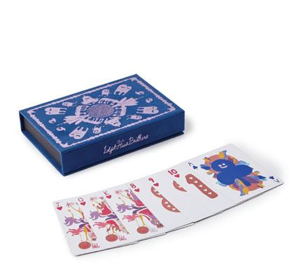 ‘Jumbo Set of Two Playing Cards’ is a hotstamped felt box containing two decks of jumbo illustrated playing cards that are as much works of art as they are functional pieces