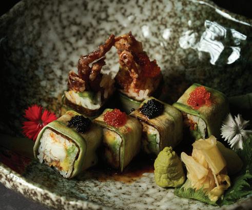 variety of sushi, salads, ceviches, hot and cold starters, Ishiyaki stone bowls, Yakimono, as well as a selection of main dishes and different steak cuts.