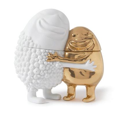 ‘Huggers’ is a gold-plated porcelain box Inspired by “the joy of rediscovering family and friends.” It is handcrafted from gold-plated porcelain, and both smiling heads come off to reveal two separate compartments.