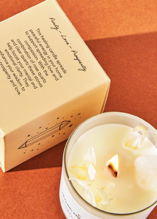 Bymystique, the Dubai-based designer jewellery brand, introduces three scented candles featuring semi-precious stones that complement its jewellery collection. These durable and high-quality candles are “hand-poured with love,” and are consciously vegan, eco-friendly and cruelty-free. The candles are made with 100% organic soy and recycled wood for the wicks. They are offered in a wide variety of fragrances, and are scented with essential oils.