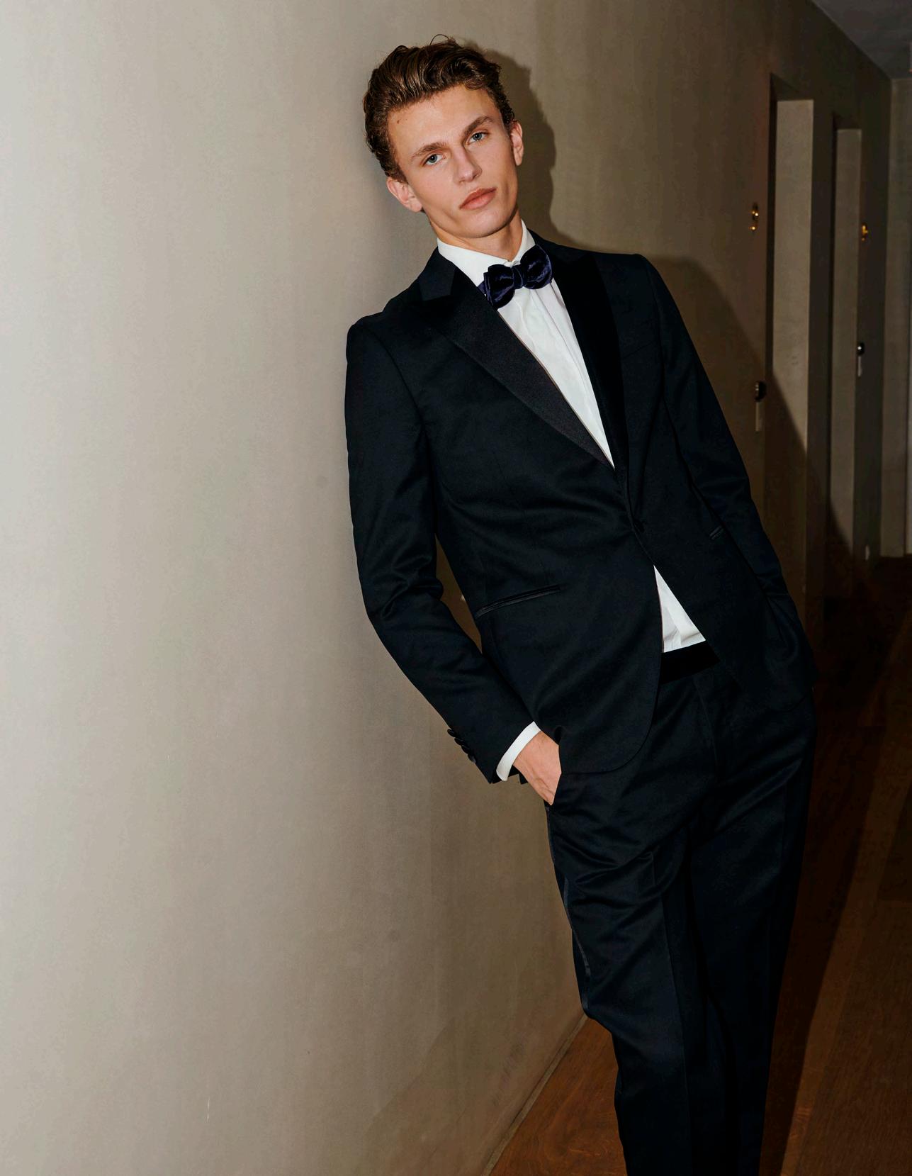 er et af de italienske her retøjsmærker, der med luksuriøse ambitioner på særligt jakkesæt blev stiftet i 1980 og hurtigt blev et stærkt brand. Siden har virksomheden udviklet kollektionen til også at omfatte mere casual mode, men her ved nytårstid er det deres lækre smokinger, der er værd at bemærke. Denne klassiske model i ren uld i sort med satindetaljer ved lommer og bukser og med et smukt revers er det oplagte valg, der holder længere end en enkelt nytårsfest. Pris: 14.000 kr.